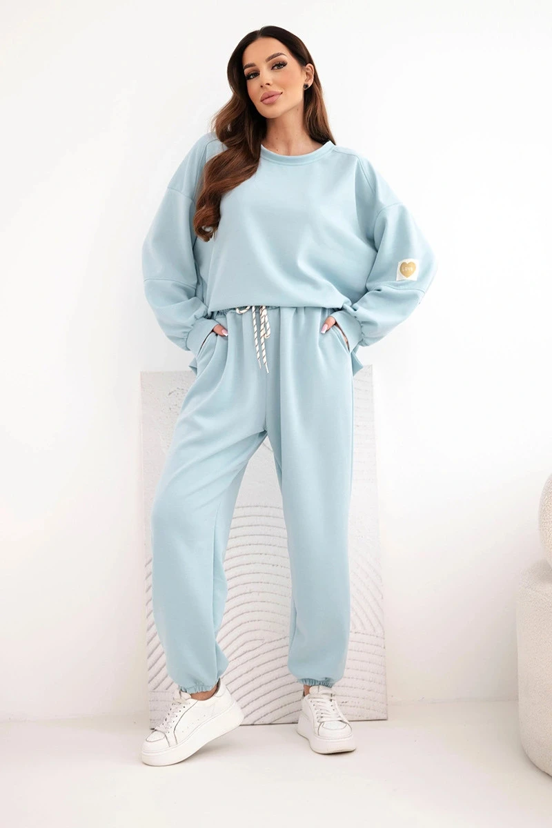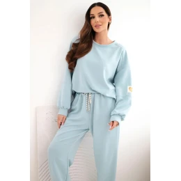 Dámský máslový komplet s volnou mikinou a kalhotami s nápisem LOVE tmavě mentolová