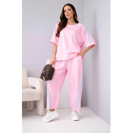Dámský máslový komplet z model 22015424 mikina a kalhoty s lampasy bonbónově růžový - K-Fashion