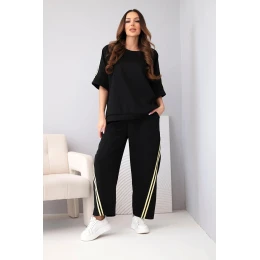Dámský máslový komplet z viskózy mikina a kalhoty s lampasy černý