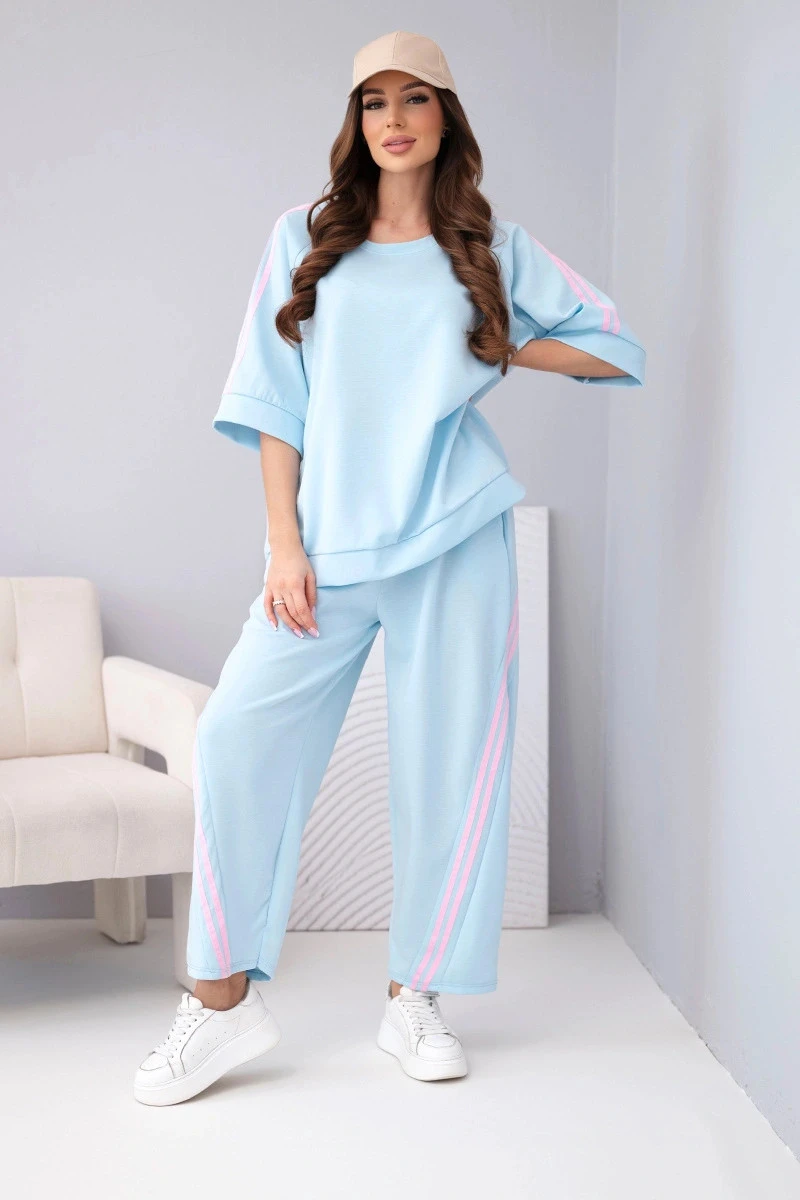 Dámský máslový komplet z viskózy, mikina a kalhoty s lampasy modrý
