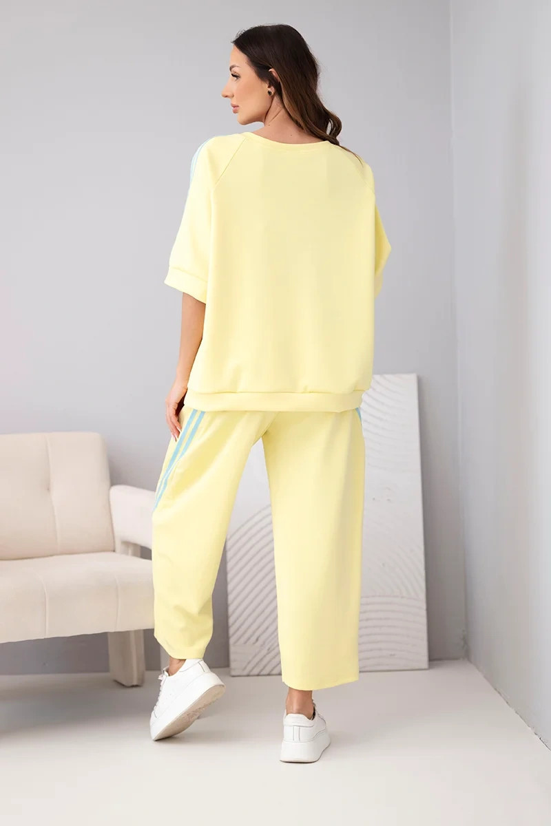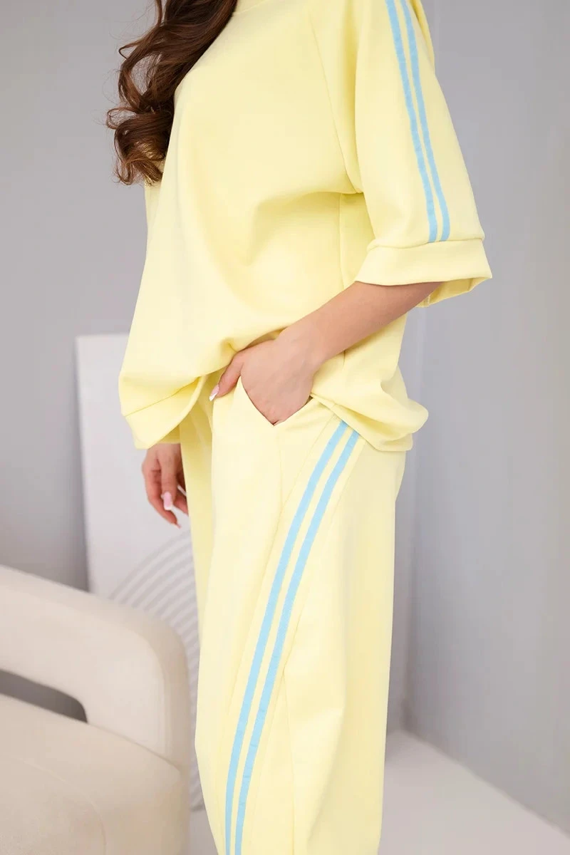 Dámský máslový komplet z viskózy mikina a kalhoty s lampasy žlutý