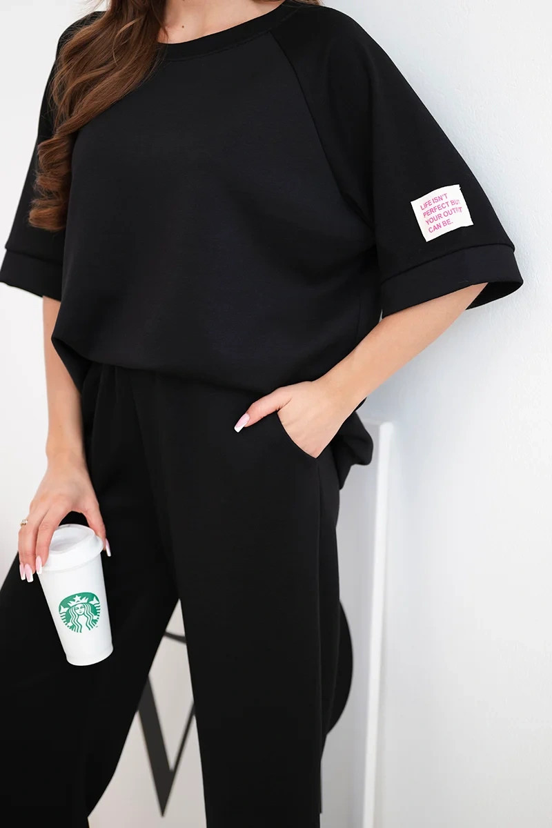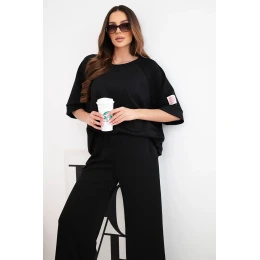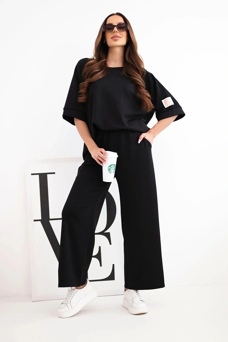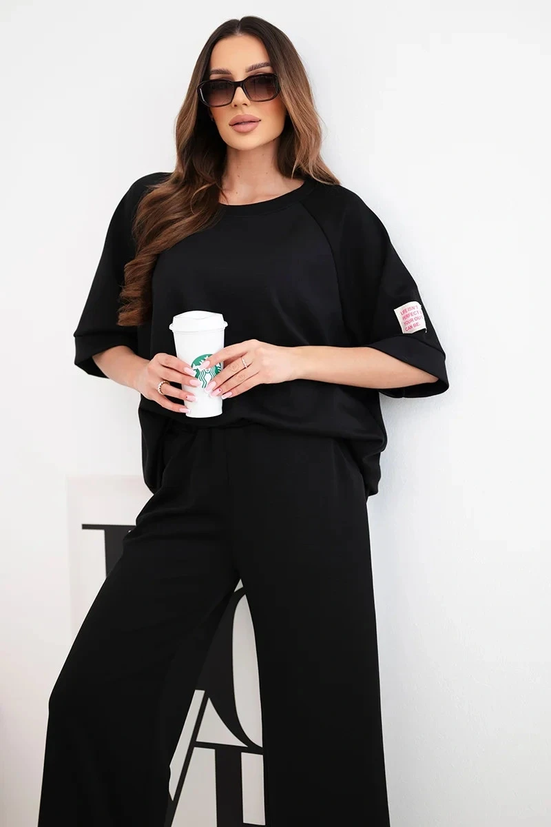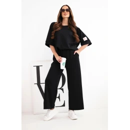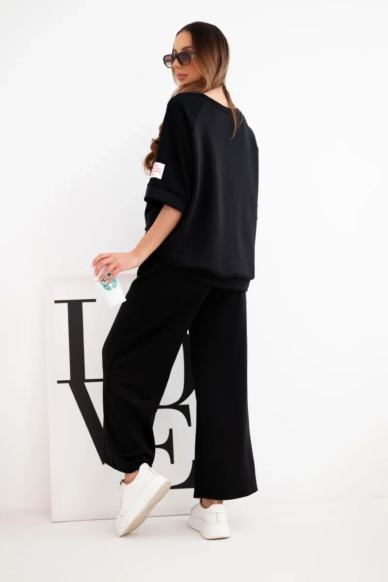 Dámský máslový komplet z viskózy mikina a široké kalhoty černý