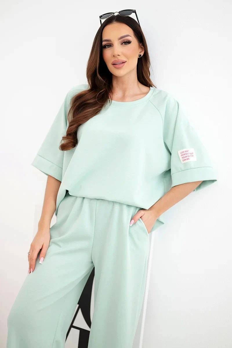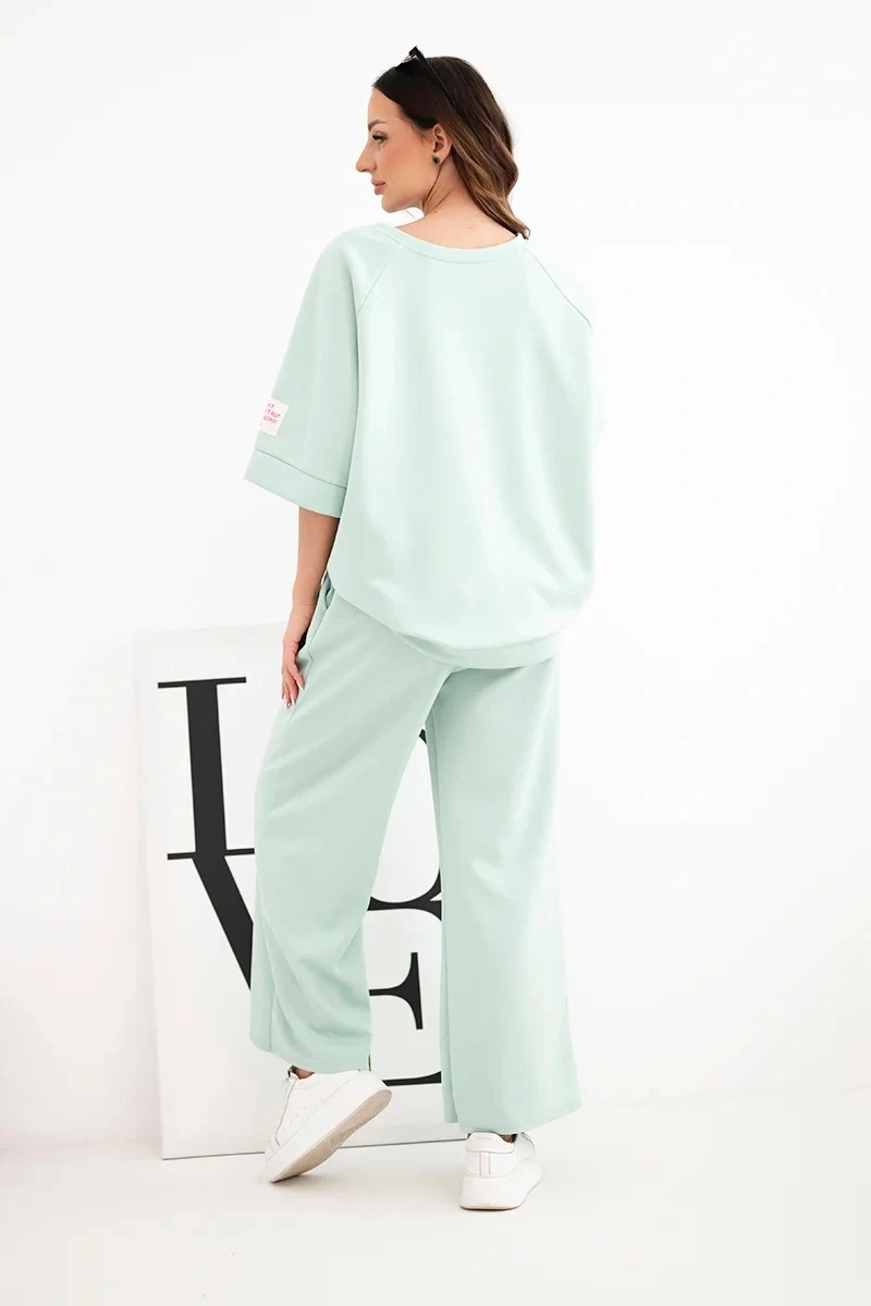 Dámský máslový komplet z viskózy mikina a široké kalhoty mentolový