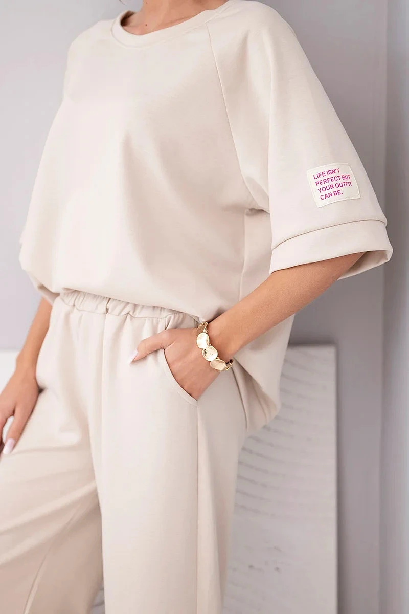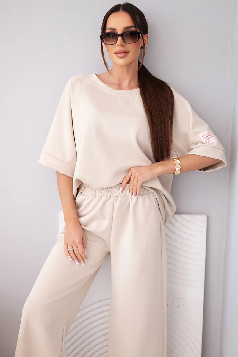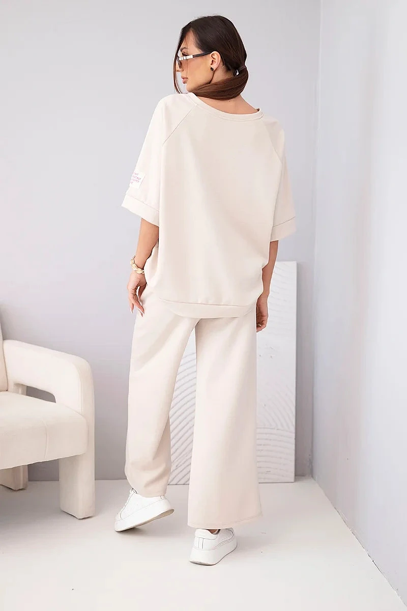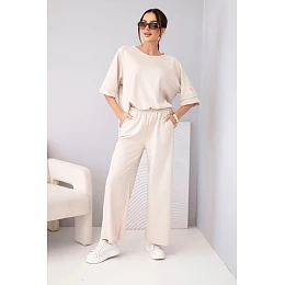 Vyrobený z vysoce kvalitní viskózy s přídavkem elastanu je set neobyčejně měkký, jemný k pokožce a příjemný na nošení. Mikina s volným střihem se skvěle přizpůsobí postavě a kalhoty se širokou nohavicí dodávají outfitu moderní charakter. Ideální volba na každý den, do práce v ležérnějším provedení, na procházku nebo cestování.