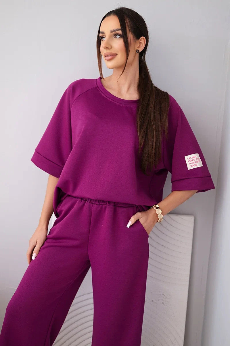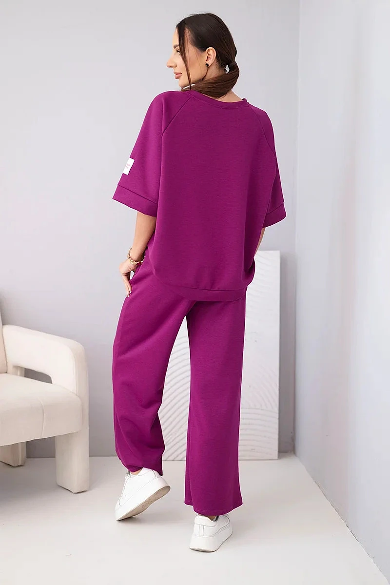 Dámský máslový komplet z viskózy mikina a široké kalhoty světle fialový