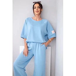 Vyrobený z vysoce kvalitní viskózy s přídavkem elastanu je set neobyčejně měkký, jemný k pokožce a příjemný na nošení. Mikina s volným střihem se skvěle přizpůsobí postavě a kalhoty se širokou nohavicí dodávají outfitu moderní charakter. Ideální volba na každý den, do práce v ležérnějším provedení, na procházku nebo cestování.