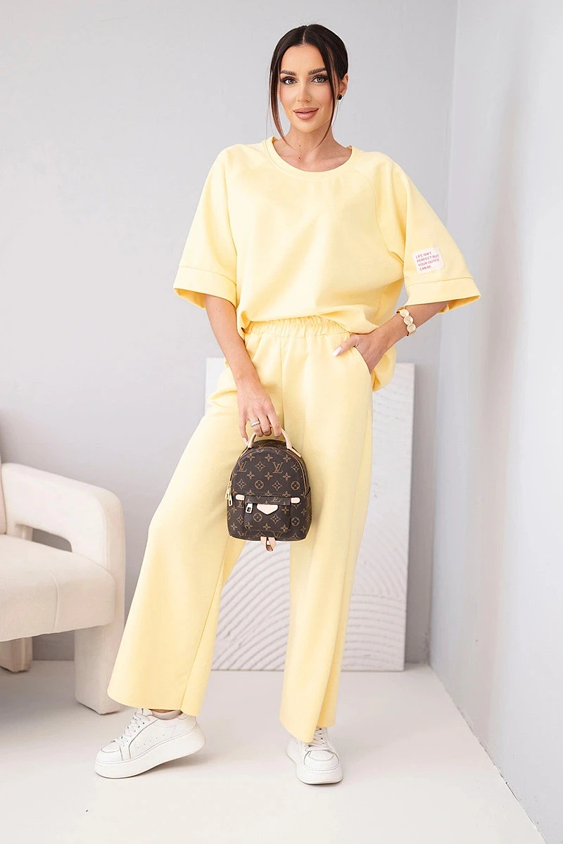 Stylový dámský set máslový je vynikající volbou pro ženy, které si cení pohodlí a módního, minimalistického stylu. Set se skládá z volné mikiny a širokých kalhot s elastickým pasem, které zajišťují plnou svobodu pohybu a pohodlí po celý den.