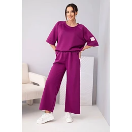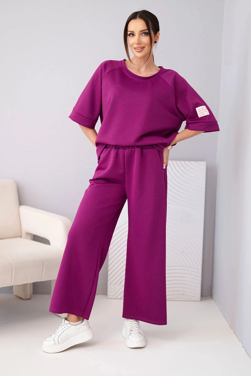 • Dámský máslový komplet z viskózy mikina a široké kalhoty světle fialový
