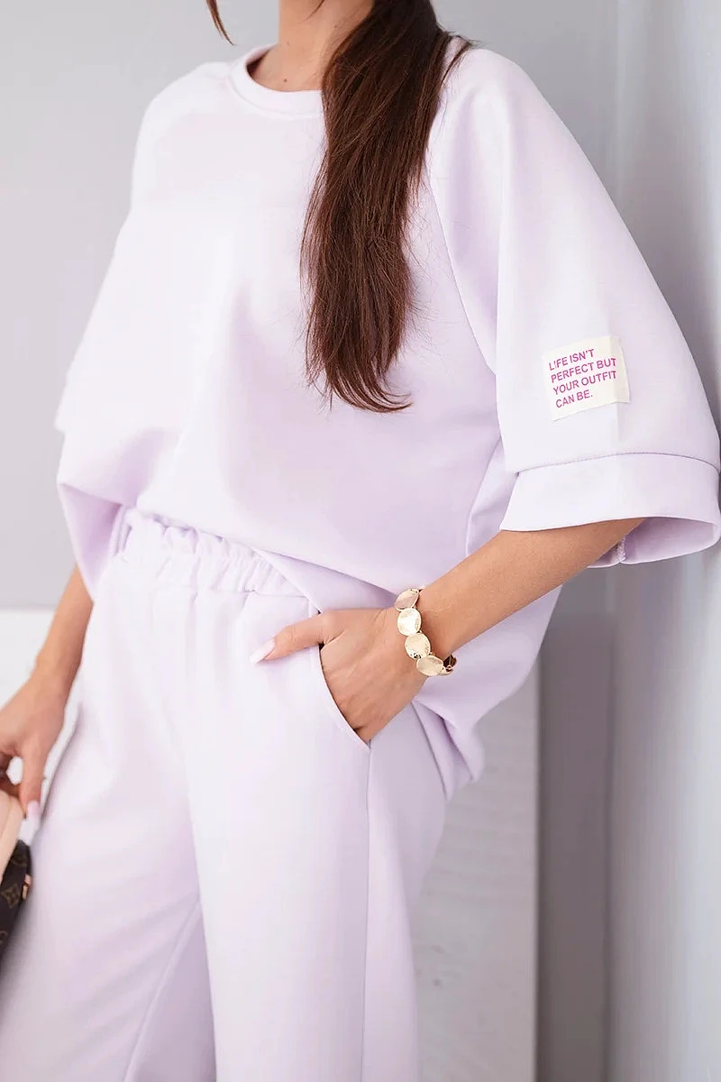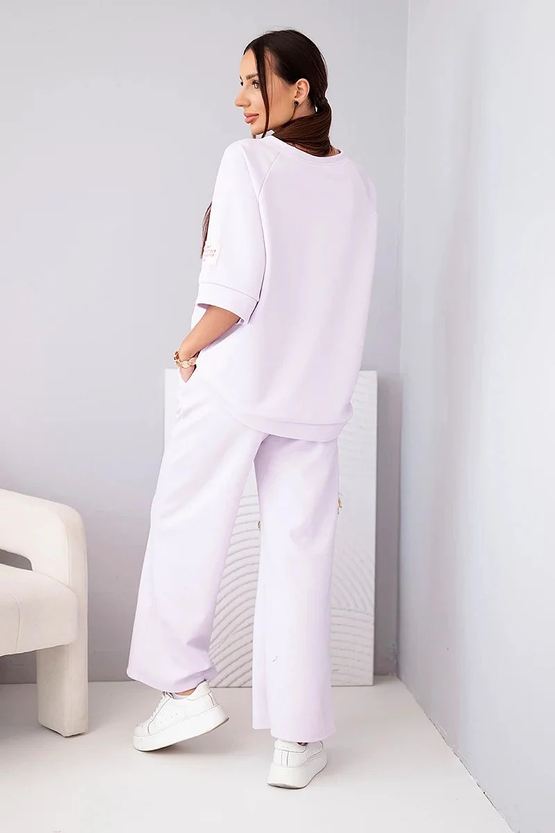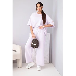 Dámský máslový komplet z viskózy mikina a široké kalhoty světle fialový
