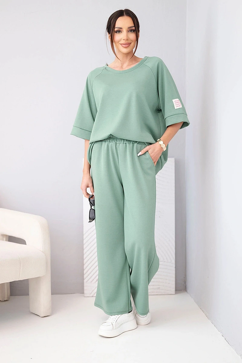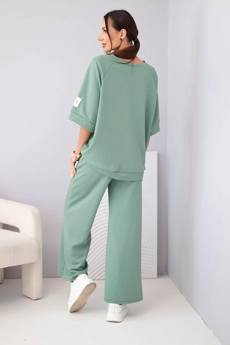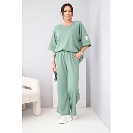 Vyrobený z vysoce kvalitní viskózy s přídavkem elastanu je set neobyčejně měkký, jemný k pokožce a příjemný na nošení. Mikina s volným střihem se skvěle přizpůsobí postavě a kalhoty se širokou nohavicí dodávají outfitu moderní charakter. Ideální volba na každý den, do práce v ležérnějším provedení, na procházku nebo cestování.