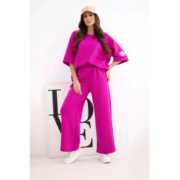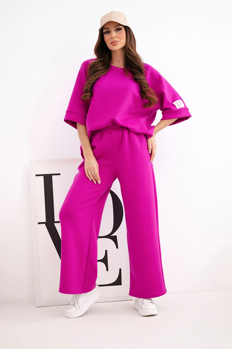 Dámský máslový komplet z viskózy mikina a široké kalhoty tmavě fialový