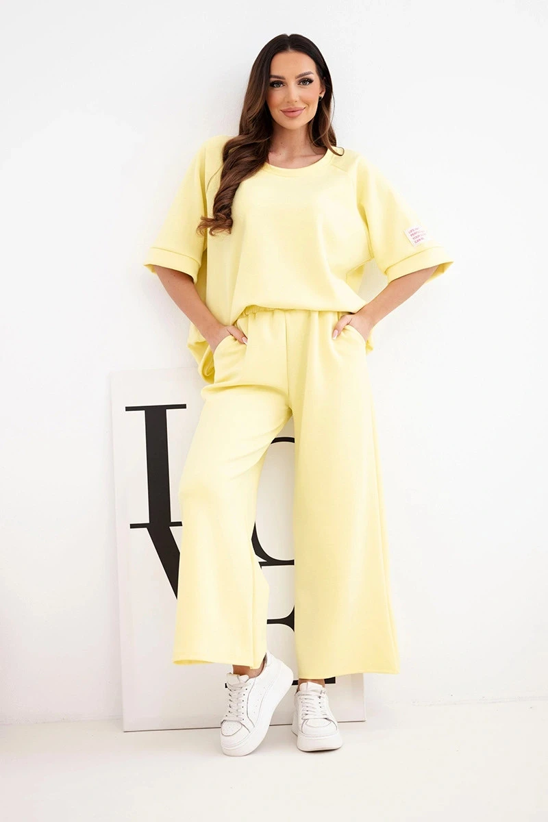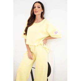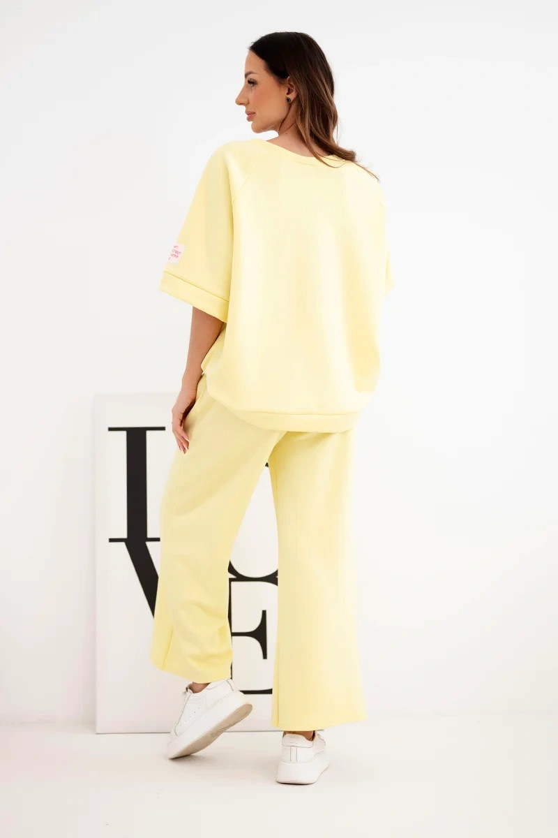 Dámský máslový komplet z viskózy mikina a široké kalhoty žlutý