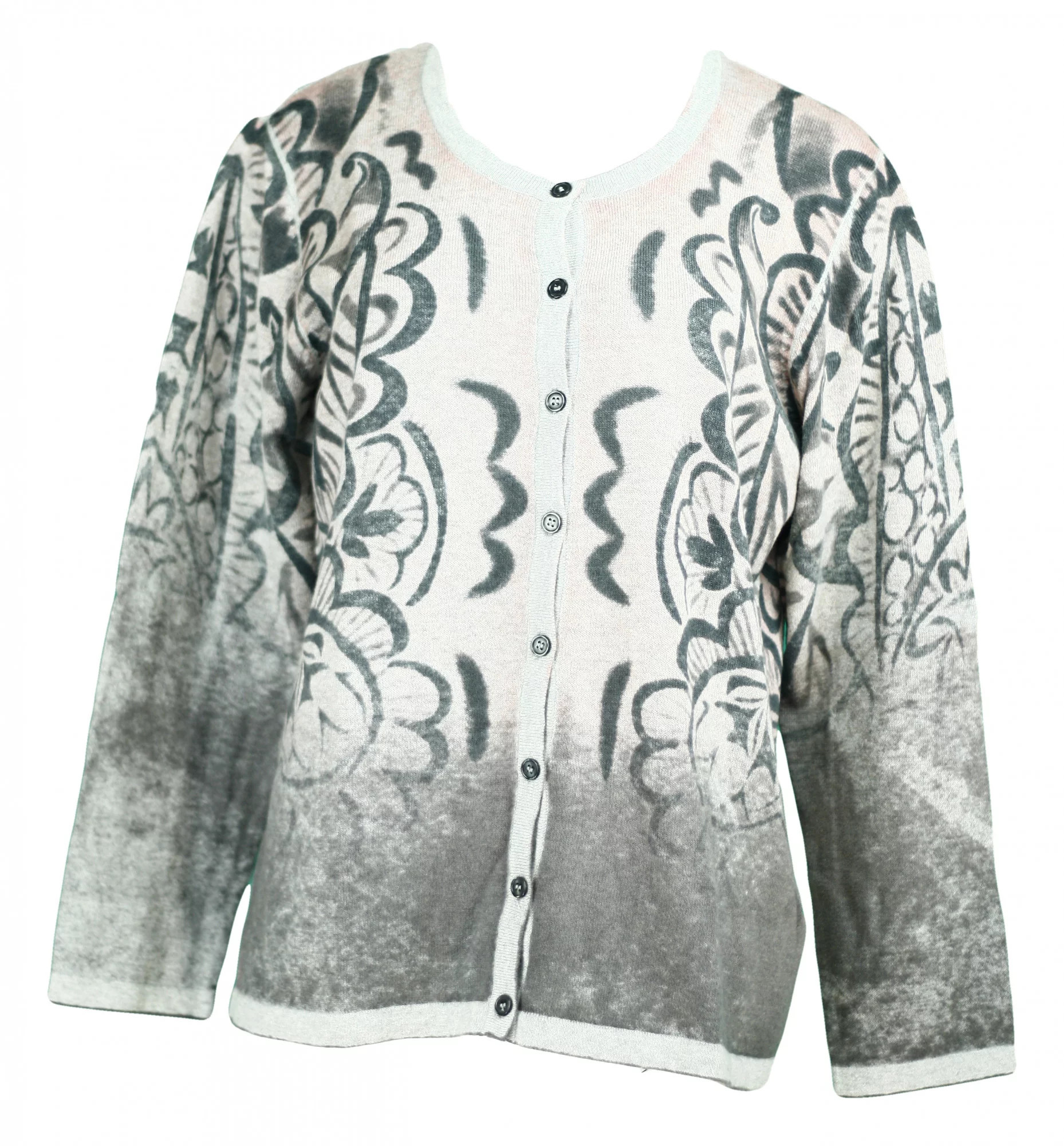 Dámský svetřík - Hegler , propínací, s kulatým výstřihem, potisk květy. Materiál 70% bavlna, 30% polyamid.