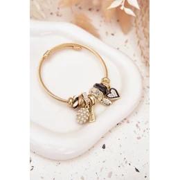 Dámský náramek vyrobený z nerezové oceli je stylový doplněk s módním, dívčím charakterem. Model ozdobený přívěsky typu charms působí lehce a efektivně, přidávající každému outfitu osobní šarm. Odolný a odolný proti poškrábání — ideální pro každodenní nošení a jako jemný akcent v elegantnějších soupravách.