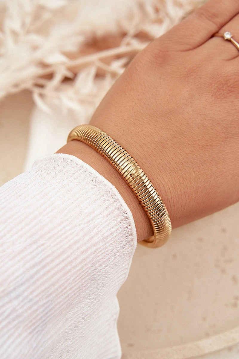 Dámský náramek vyrobený ze nerezové oceli je jednoduchý a elegantní doplněk k běžným i stylovějším outfitům. Model bez zapínání je pohodlný na nošení a snadno se nasazuje, přičemž se dobře přizpůsobí zápěstí. Minimalistický design umožňuje, aby náramek ladil s mnoha styly, a tvořil univerzální doplněk šperků.