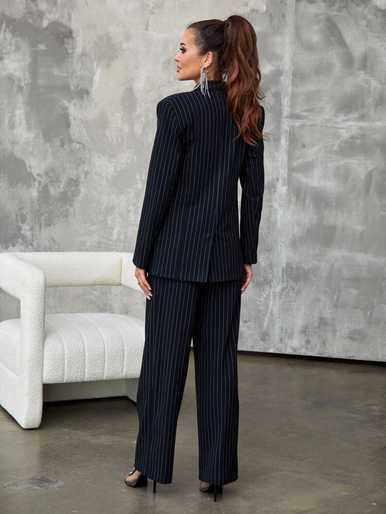 Tento dvoudílný oblek je vyroben z vysoce kvalitního materiálu a je ideální volbou pro ženy, které dbají na trendy. Kalhoty mají nejmódnější střih se širokými nohavicemi, dvě kapsy a mírně zvýšený pas. Oblek je doplněn sakem klasického střihu a vypadá skvěle jako komplet i samostatně.