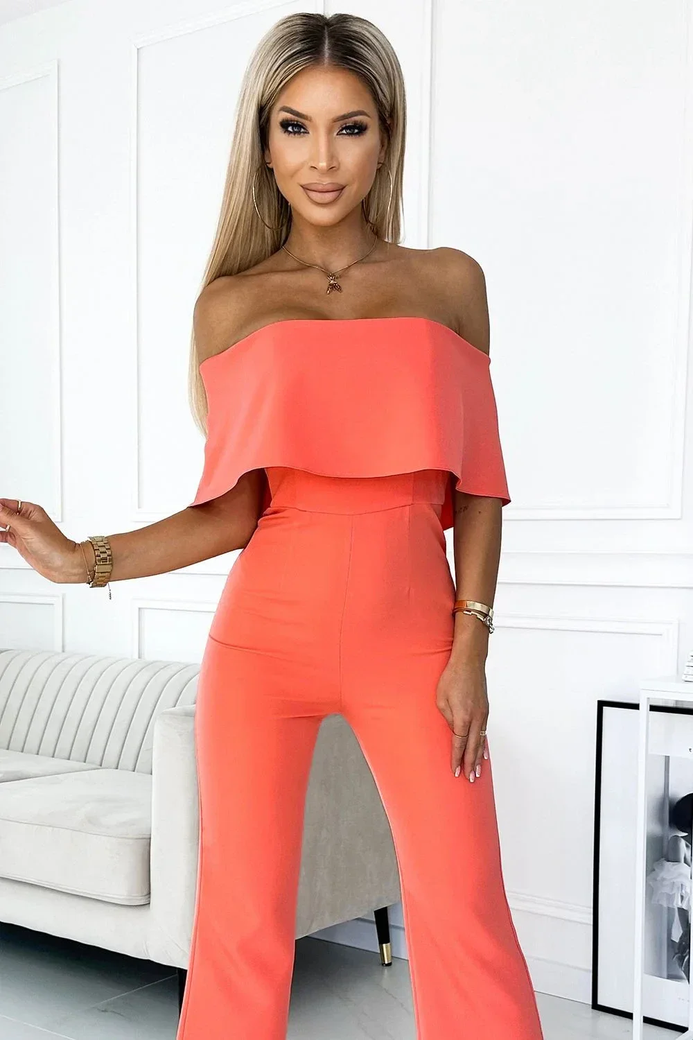 Dámský overal 444-1 Bergamo - broskvová barva - top je v korzetovém stylu s kosticemi - bez rukávů - zapínání vzadu na skrytý zip