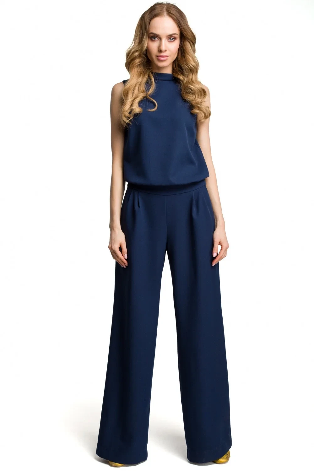 I v kalhotách můžete vypadat velmi žensky. Tento jedinečný oblek kombinuje pohodlí kalhot s jemnou elegancí, kterou očekáváte od večerních šatů. Zadní část obleku je otevřená a zapíná se na miniaturní patentky. Kapsy na bocích.