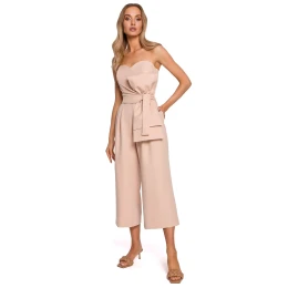 Prolomte stereotypy a vyjádřete se svým oblečením! Tento oblek má sílu! Výrazný korzetový top s výraznými detaily, jako je přehozená mašle a pásek uvázaný kolem pasu, a široké nohavice v délce 7/8 zdůrazní váš osobitý styl. Kryté zapínání na zip.