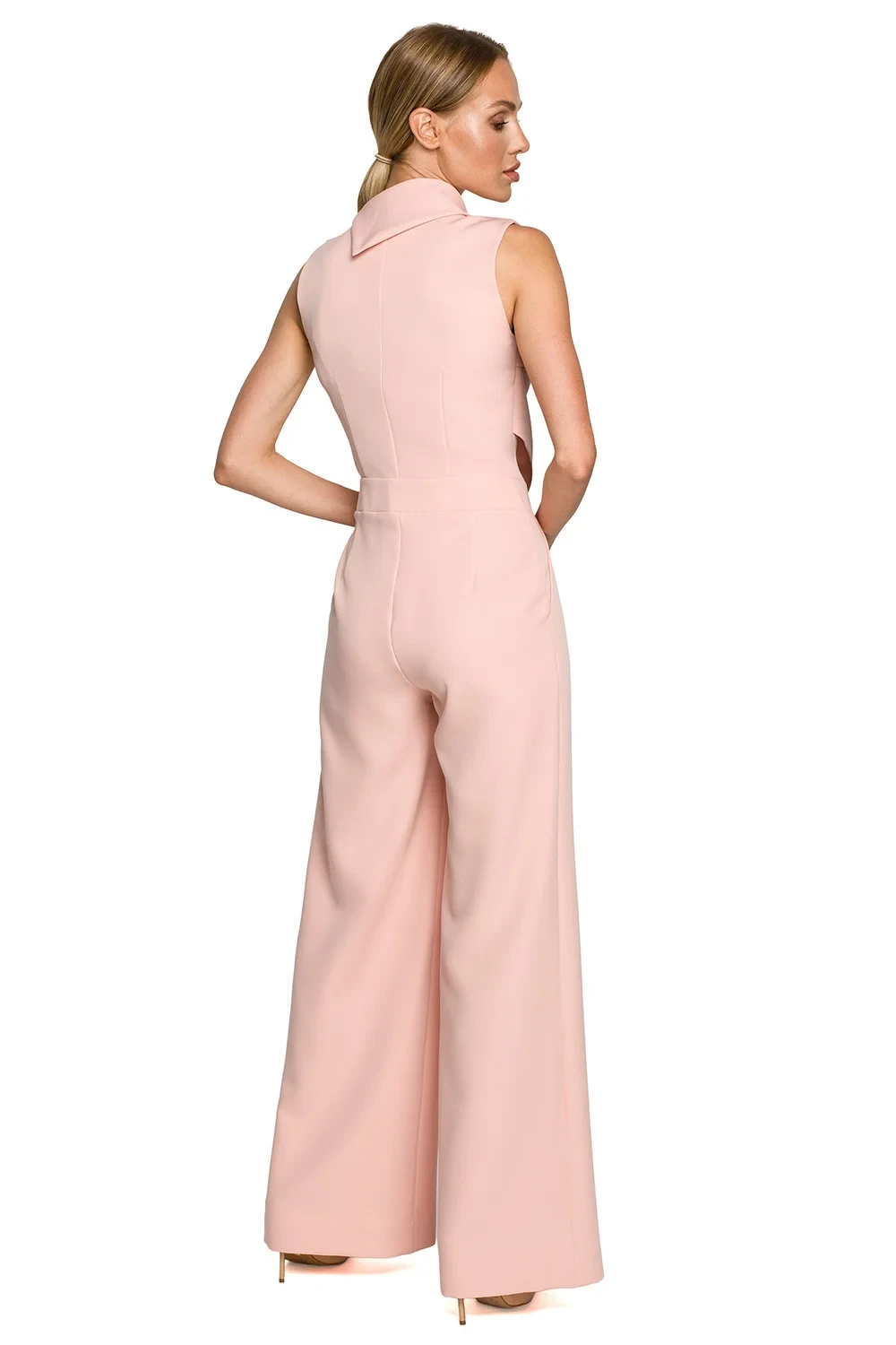 Kombinéza se nyní nadobro zařadila do šatníku určeného pro zvláštní příležitosti. Náš fantastický overal s elegantními širokými nohavicemi se díky jedinečnému hornímu dílu s ohrnovacím límcem a ozdobným zapínáním na ramenou a dvojitému ozdobnému přednímu dílu skvěle hodí na velké výlety. Oblek je bez podšívky a zapíná se na krytý zip.