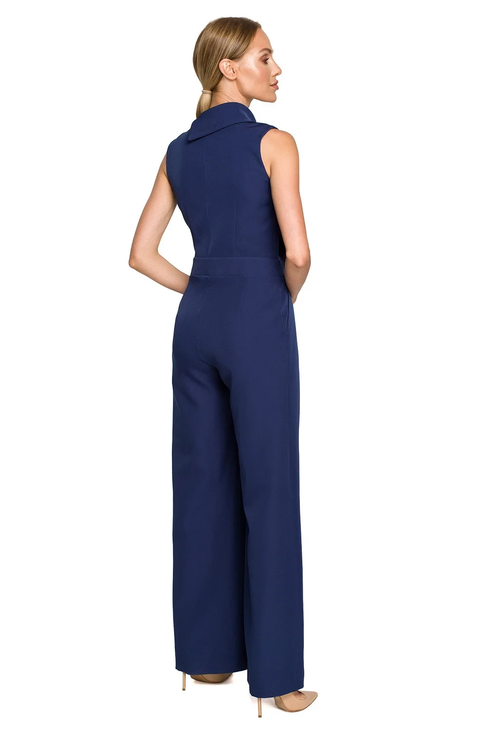 Kombinéza se nyní nadobro zařadila do šatníku určeného pro zvláštní příležitosti. Náš fantastický overal s elegantními širokými nohavicemi se díky jedinečnému hornímu dílu s ohrnovacím límcem a ozdobným zapínáním na ramenou a dvojitému ozdobnému přednímu dílu skvěle hodí na velké výlety. Oblek je bez podšívky a zapíná se na krytý zip.