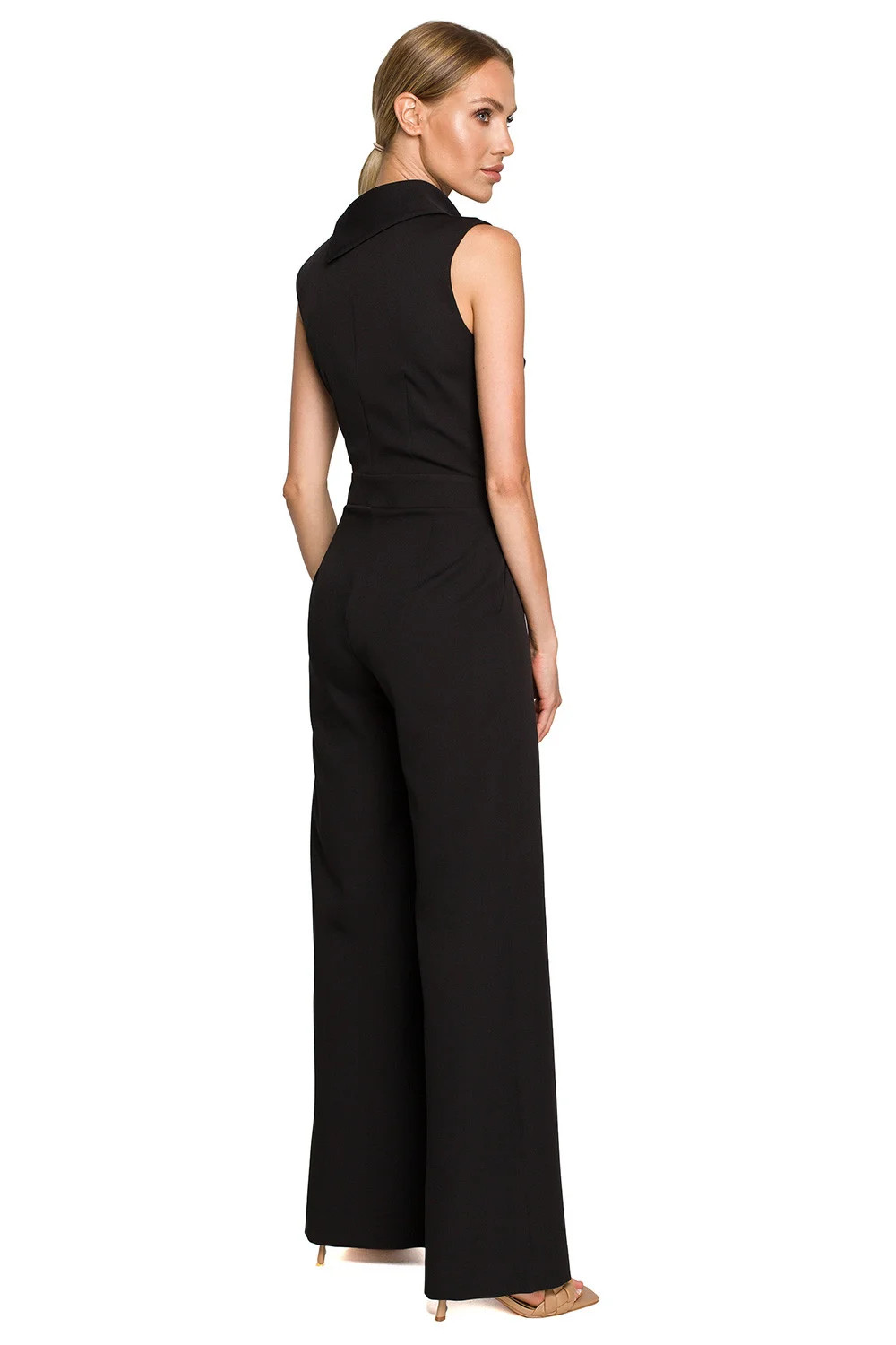 Kombinéza se nyní nadobro zařadila do šatníku určeného pro zvláštní příležitosti. Náš fantastický overal s elegantními širokými nohavicemi se díky jedinečnému hornímu dílu s ohrnovacím límcem a ozdobným zapínáním na ramenou a dvojitému ozdobnému přednímu dílu skvěle hodí na velké výlety. Oblek je bez podšívky a zapíná se na krytý zip.