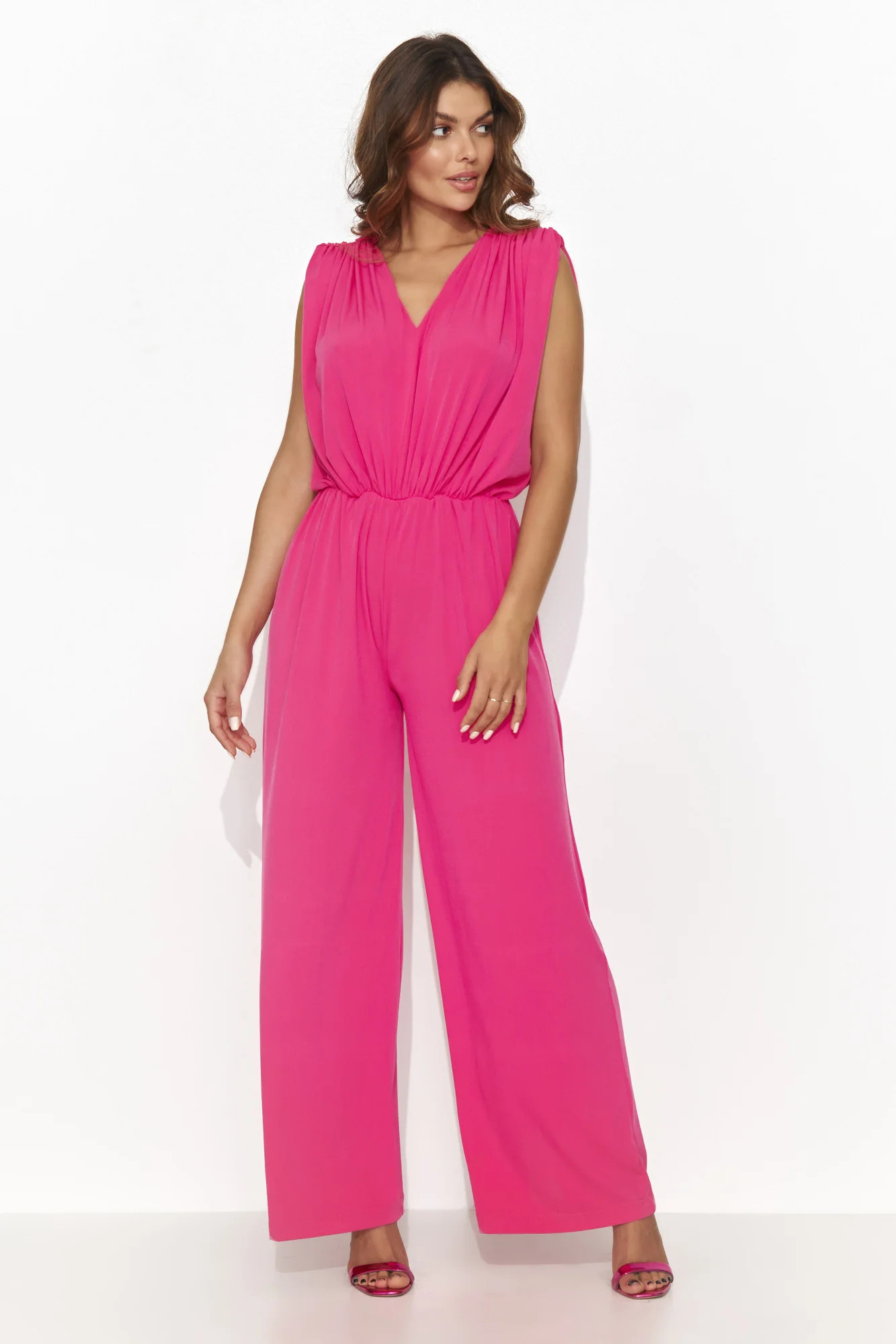 Elegantní dámský overal je k dispozici v šesti výjimečně nadčasových barvách. Uvolněný střih poskytuje pohodlí a snadné nošení. Má elegantní řasení ve výšce ramen. Výstřih ve tvaru srdce nejen zvýrazňuje poprsí, ale také opticky prodlužuje krk a dodává mu jemnou eleganci. Dlouhé a široké nohavice jsou nadčasovým módním řešením, které se hodí k nejrůznější obuvi. Kombinéza je vyrobena z kluzkého a na dotek mimořádně příjemného materiálu, takže její nošení je skutečným potěšením. Je ideální volbou pro ženy, které ocení klasiku a pohodlí v jednom.