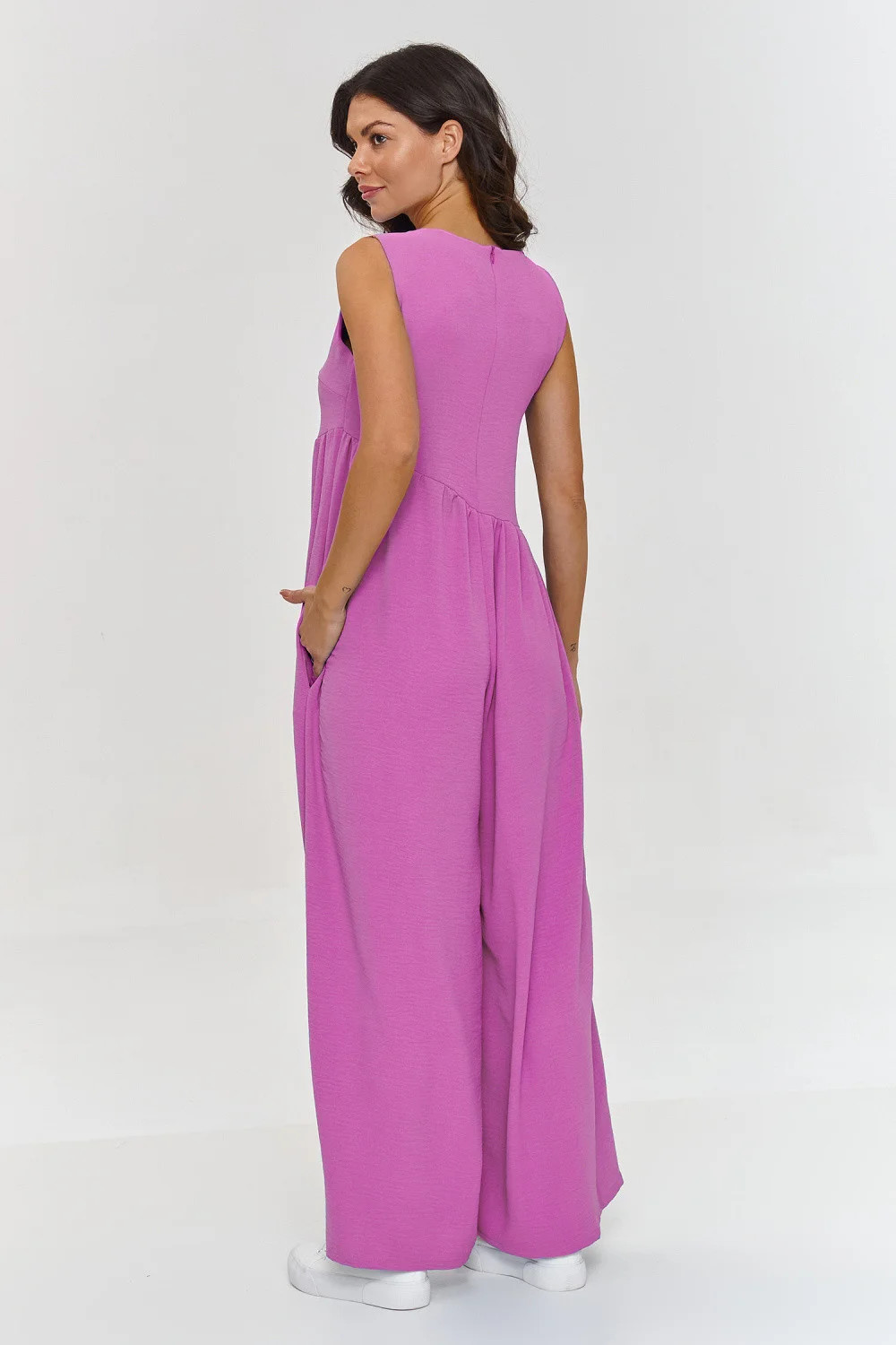 Tento maxi overal je ideální volbou pro ženy, které hledají pohodlné a stylové řešení na teplé dny. Má volný střih, který poskytuje maximální pohodlí a šikmé švy v oblasti pasu vytvářejí jemné záhyby. Široké nohavice dodávají celku lehkost a eleganci, vytvářejí ideální možnost pro každodenní outfit nebo letní výlety. Model je vybaven kapsami, co mu dodává funkčnost a praktičnost. Kapsy jsou skvělým řešením, pokud chcete mít po ruce nejnutnější věci, aniž byste museli ustoupit od elegantního vzhledu. Vyrobeno z prodyšného materiálu, který je nejen příjemný na dotek, ale také praktický a prodyšný. Overal má kulatý výstřih, který zajišťuje pohodlí a stylový vzhled. Náš maxi overal s širokými nohavicemi je skvělou volbou na každou příležitost, kdy hledáte módní a zároveň pohodlné řešení. Díky volnému střihu, funkčním kapsám a lehkému materiálu se overal stane vaší oblíbenou volbou na jarní a letní dny, zaručující pohodlí a styl.