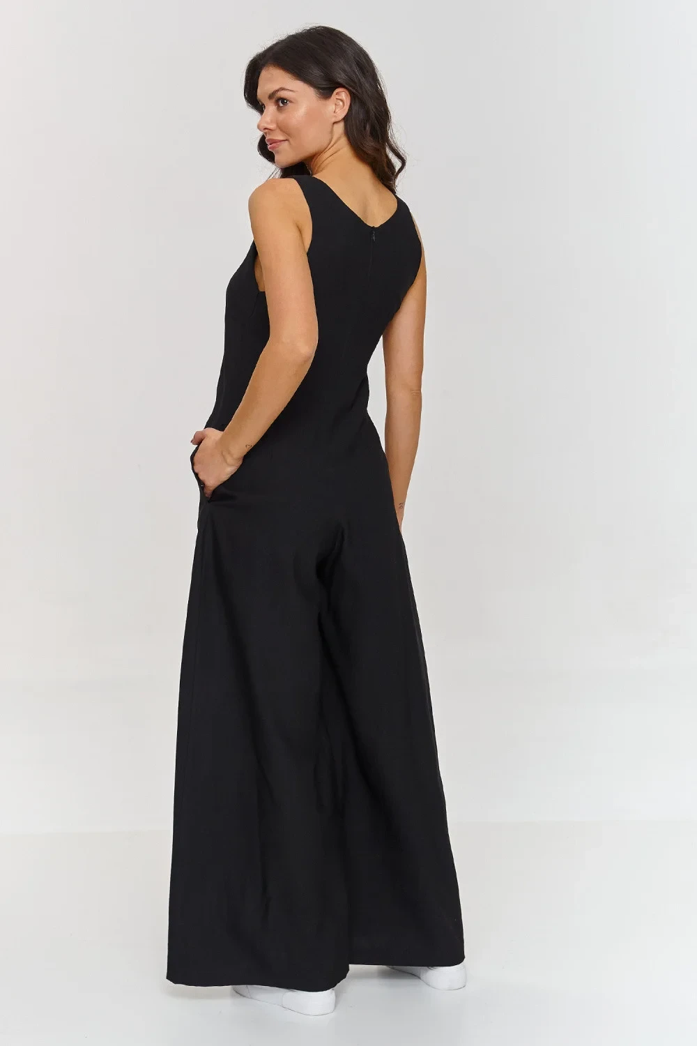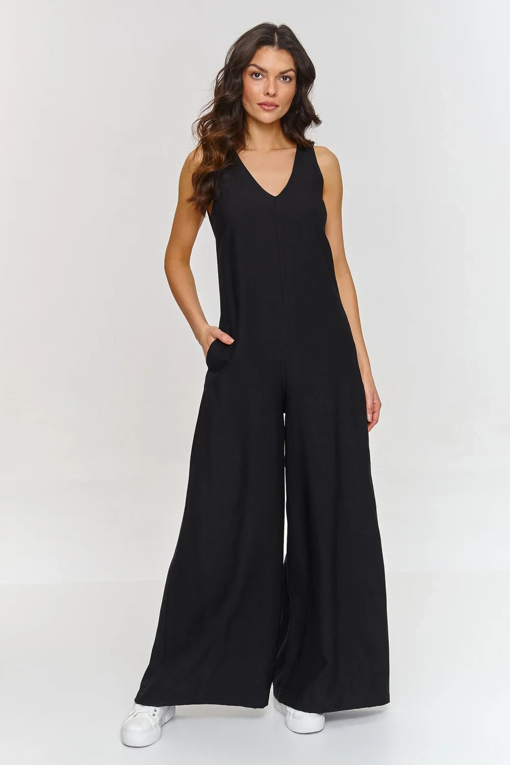 Elegantní overal je skvělým návrhem pro ženy hledající módní outfit. Model má jemný výstřih ve tvaru písmene V, který mu dodává elegantní a ženský vzhled a navíc opticky prodlužuje krk, přidává třídu a lehkost. Široké nohavice a volný střih dělají z overalu velmi pohodlný a zároveň originální kousek. Model se zapíná na zip, co usnadňuje jeho oblékání, zatímco boční kapsy jsou praktickým doplňkem. Další jeho výhodou je příjemný na dotek a prodyšný materiál, což z něj činí skvělou volbu na teplé dny. Díky jednoduchému, ale efektnímu střihu se overal hodí jak na každodenní nošení, tak na formální příležitosti, jako jsou schůzky nebo večerní akce. Můžete ho kombinovat s bílými teniskami na každý den nebo s podpatky na elegantnější události.