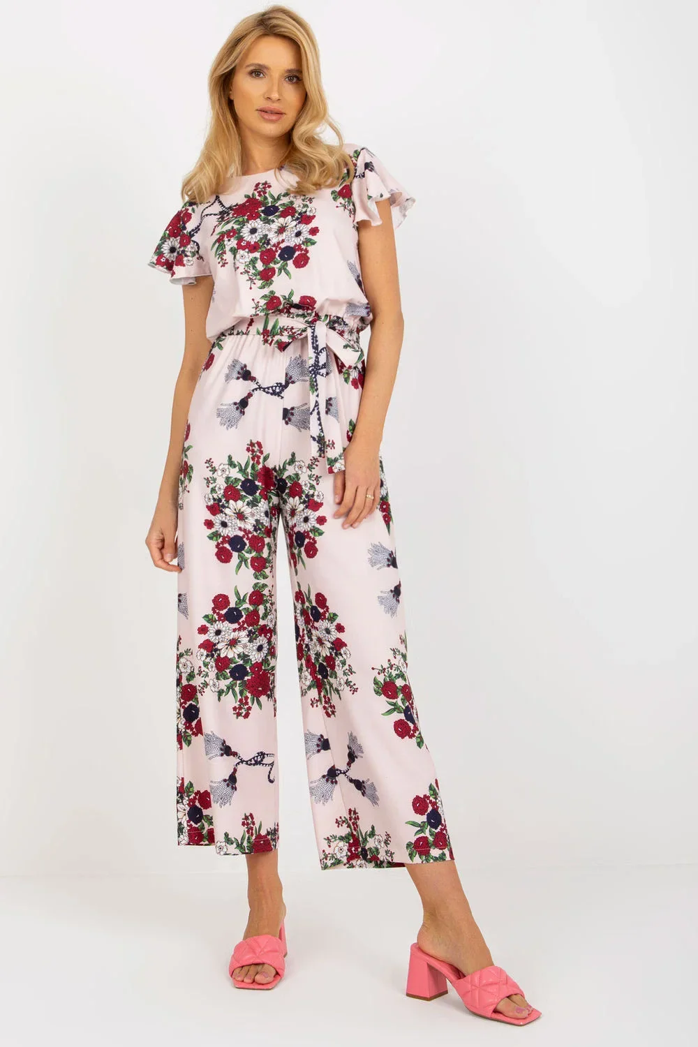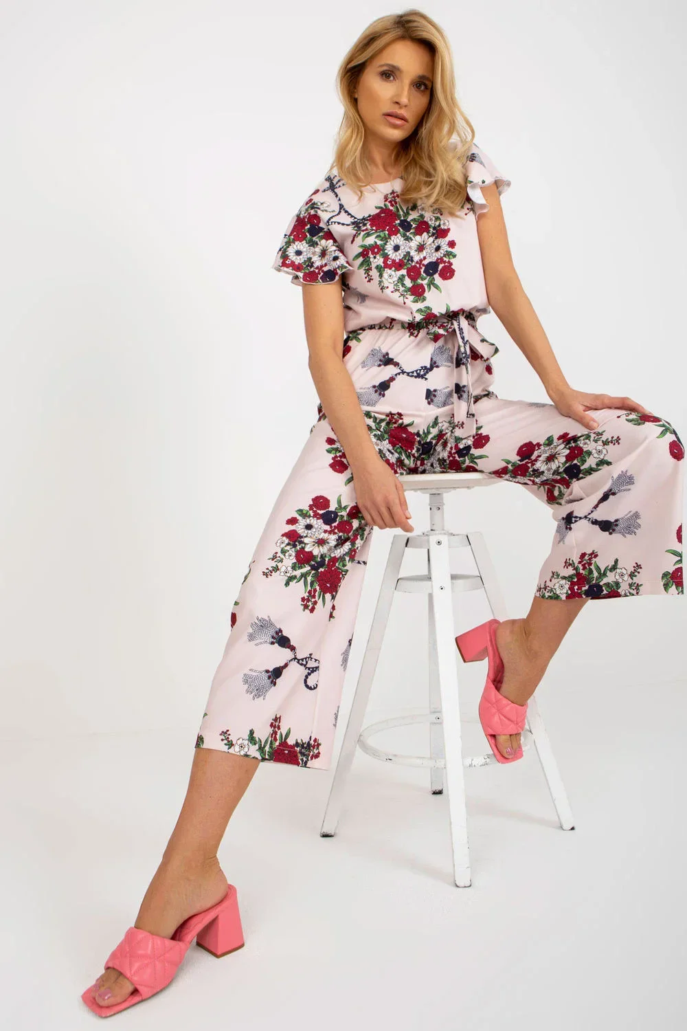Květinový overal je ideální volbou pro každodenní letní stylizace. Vyrobený z měkkého, prodyšného bavlněného materiálu s přídavkem elastanu poskytuje pohodlí a volnost pohybu po celý den. Model má krátké rukávy ve formě roztomilých volánků a klasický kulatý výstřih, který zdůrazňuje jemný charakter stylizace. Dlouhé nohavice dodávají siluetě lehkost a šněrování v pase umožňuje přizpůsobení overalu postavě a zdůraznění pasu. Květinový vzor dodává celku ženské, romantické kouzlo. Je to skvělá volba na procházku, setkání s přáteli nebo letní den ve městě.