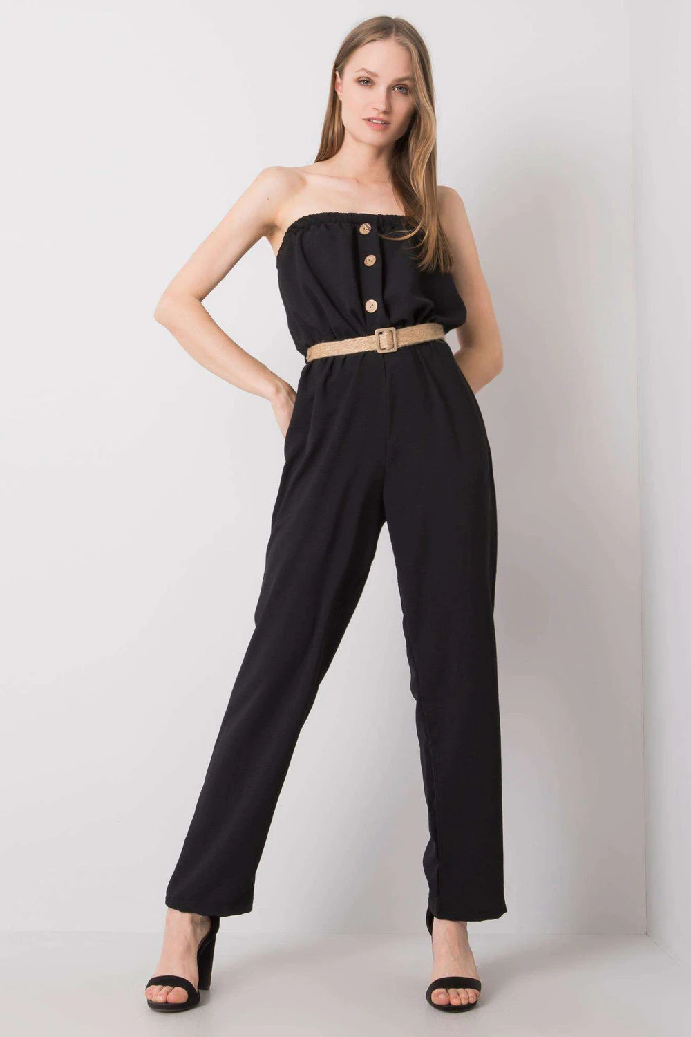 Kombinéza bez rukávů je pohodlná a stylová volba na každý den. Vyrobená z kombinace bavlny a polyesteru spojuje prodyšnost s odolností materiálu. Hladký vzor a obdélníkový výstřih s gumou dodávají subtilně elegantní vzhled a zároveň zajišťují pohodlí při nošení. Dlouhé nohavice a elastický pas s gumou podtrhují siluetu a poskytují volnost pohybu. Kombinéza nemá zapínání, což ji činí mimořádně snadnou na oblékání. Celkový vzhled doplňují ozdobné knoflíky na přední straně a zapínací pásek, který stylizaci dodává charakter a umožňuje upravit přiléhavost v pasu. Ideální na každodenní nošení, pohodlný, praktický a módní zároveň.