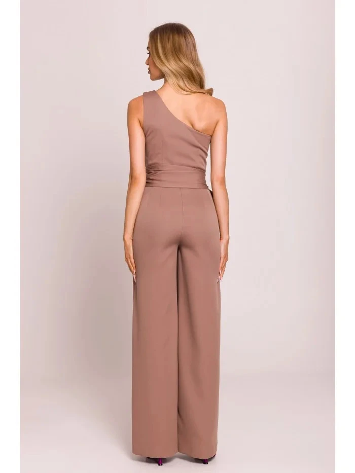 - asymetrický jednodílný overal design na jedno rameno se šerpami na zavazování