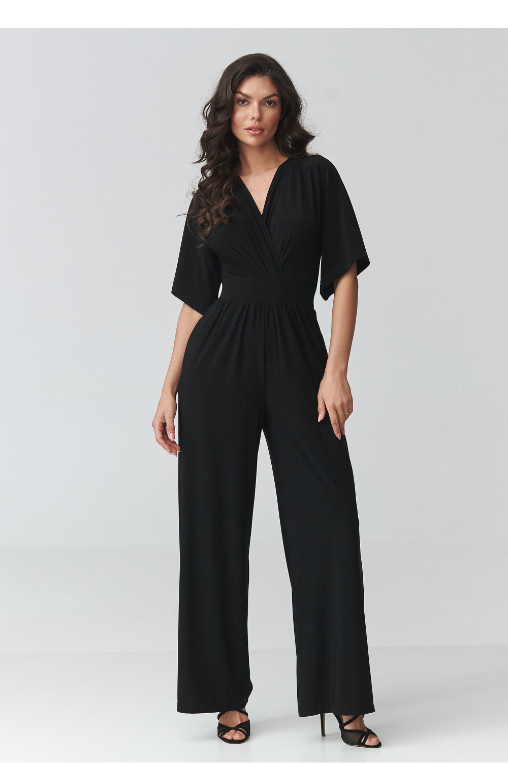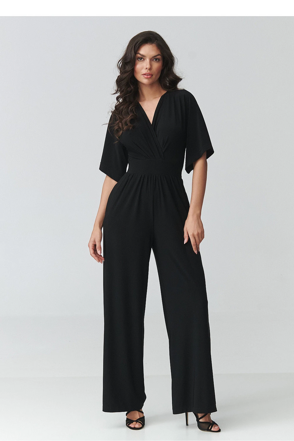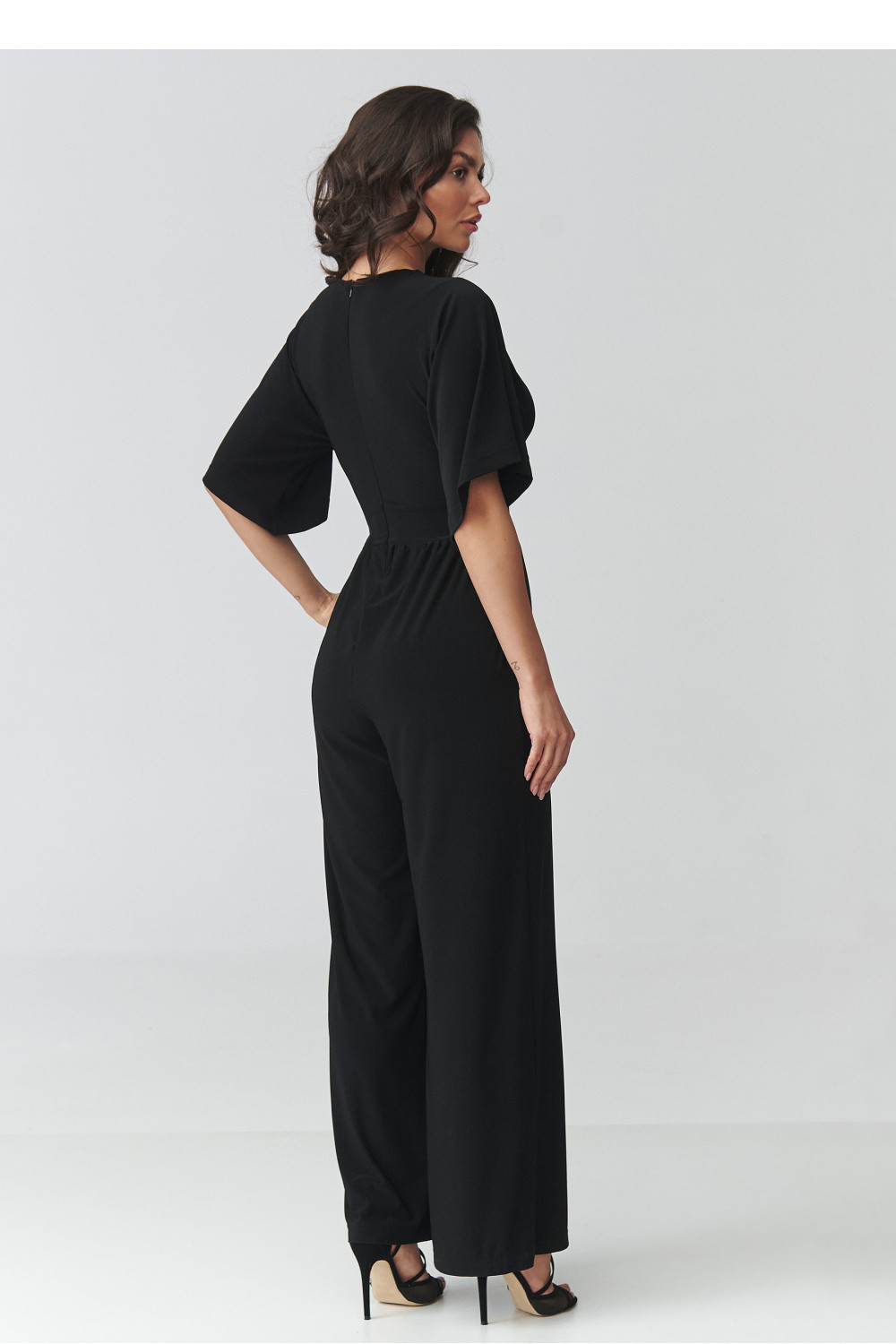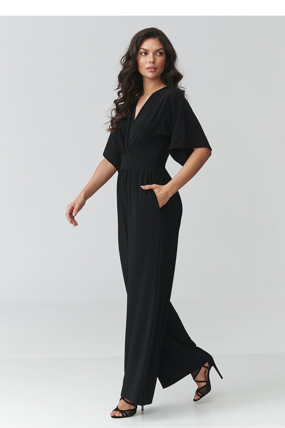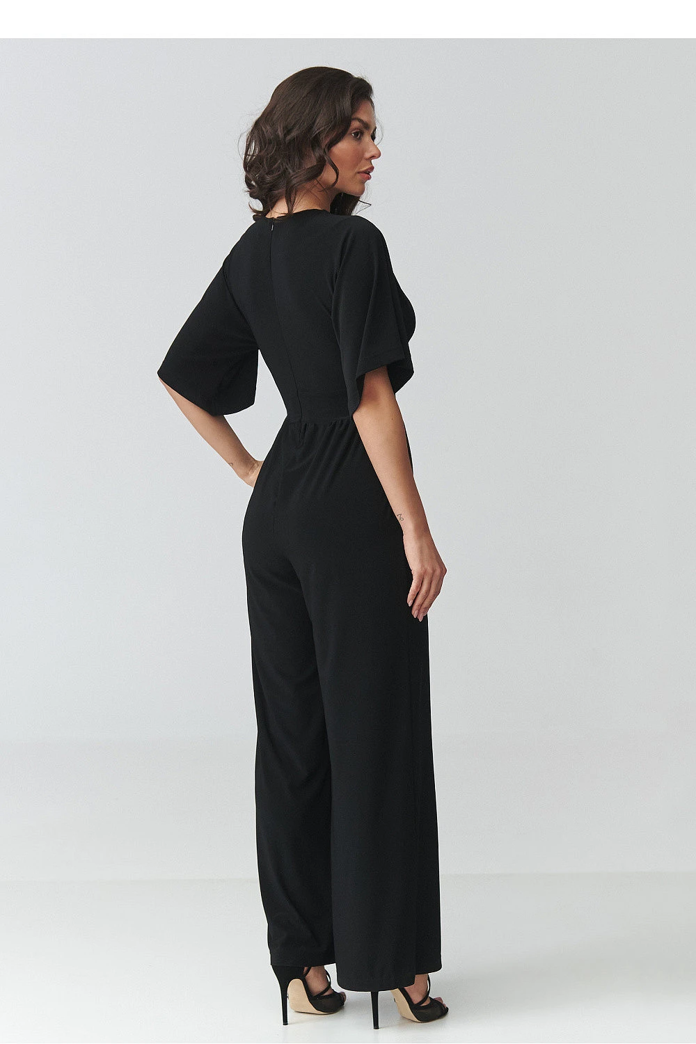 Elegantní dámský kombinéza je ideální volbou pro ženy, které oceňují eleganci, pohodlí a nadčasový styl. Model se vyznačuje ženským střihem s přesahujícím výstřihem, který jemně zdůrazňuje postavu a dodává stylizaci lehkost a eleganci. Přizpůsobený pas krásně tvaruje proporce těla a široké nohavice dodávají celku moderní charakter a zajišťují plnou volnost pohybu. Tento elegantní kombinéza na zvláštní příležitosti se skvěle hodí na večírky, rodinné slavnosti, obchodní schůzky nebo večerní vycházky. Díky pečlivě navrženému střihu kombinuje pohodlí nošení s moderním vzhledem, což z něj činí skvělou alternativu ke klasickému šatům. Kratší rukávy zajišťují pohodlí a praktické kapsy zvyšují funkčnost modelu.