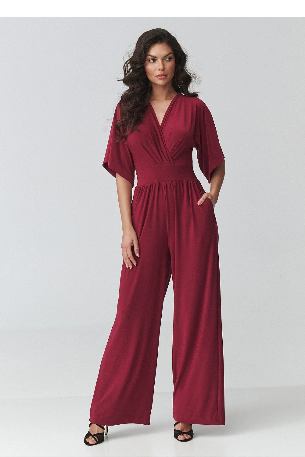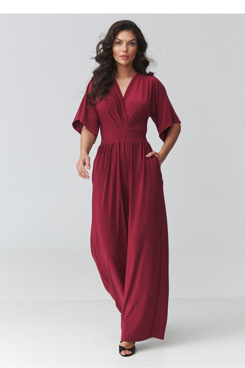 Elegantní dámský overal je ideální volbou pro ženy, které ocení eleganci, pohodlí a nadčasový styl. Model se vyznačuje ženským střihem s přesahujícím výstřihem, který jemně podtrhuje postavu a dodává stylizaci lehkost a třídu. Přizpůsobený pas krásně modeluje proporce těla a široké nohavice dodávají celku moderní charakter a zajistí plnou volnost pohybu. Tento elegantní overal na speciální příležitosti se skvěle hodí na večírky, rodinné oslavy, obchodní setkání nebo večerní vycházky. Díky pečlivě navrženému střihu spojuje pohodlí nošení s módním vzhledem, což z něj činí skvělou alternativu k klasické šaty. Kratší rukávy zajišťují pohodlí a praktické kapsy zvyšují funkčnost modelu.