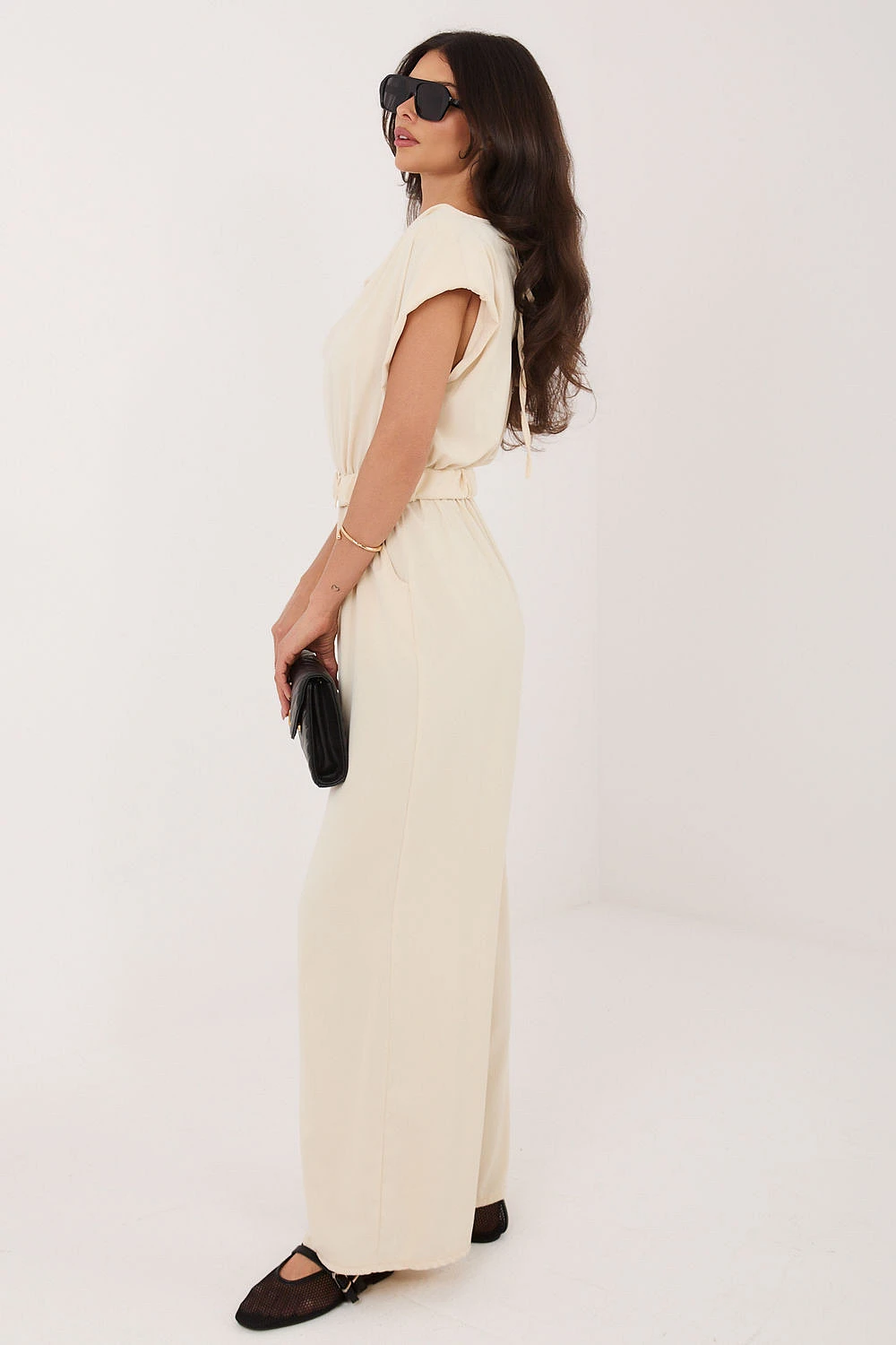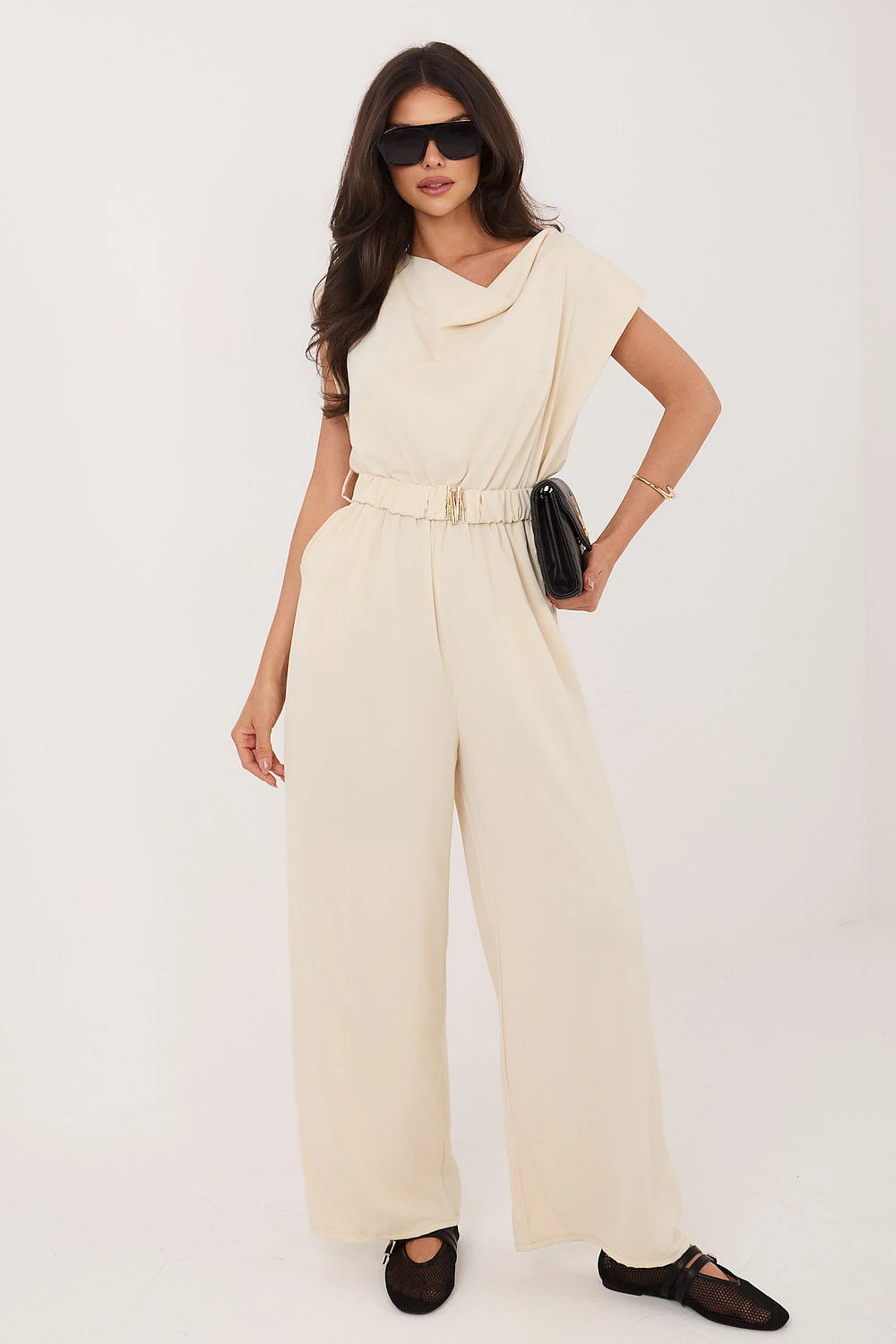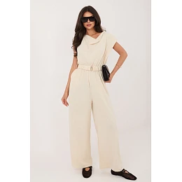 Elegantní kombinéza s hladkým zpracováním je univerzální volbou, která se hodí jak do každodenního života, do práce, tak i na více slavnostní příležitosti. Vyrobena z materiálu kombinujícího polyester a elastan, poskytuje pohodlí, pružnost a estetické přizpůsobení se postavě. Model s dlouhými nohavicemi a krátkým rukávem vypadá lehce a moderně. Tekutý výstřih dodává celku jemnou eleganci a ženský charakter, krásně se přizpůsobuje postavě. Do pasu je vsazena elastická guma, která zajistí pohodlí a dobré přizpůsobení, a další zapínací pásek umožňuje zdůraznit pas a dodat stylizaci výraznosti. Absence zapínání dělá kombinézu pohodlnou a snadnou na oblékání, což z ní činí praktickou volbu na různé příležitosti.
