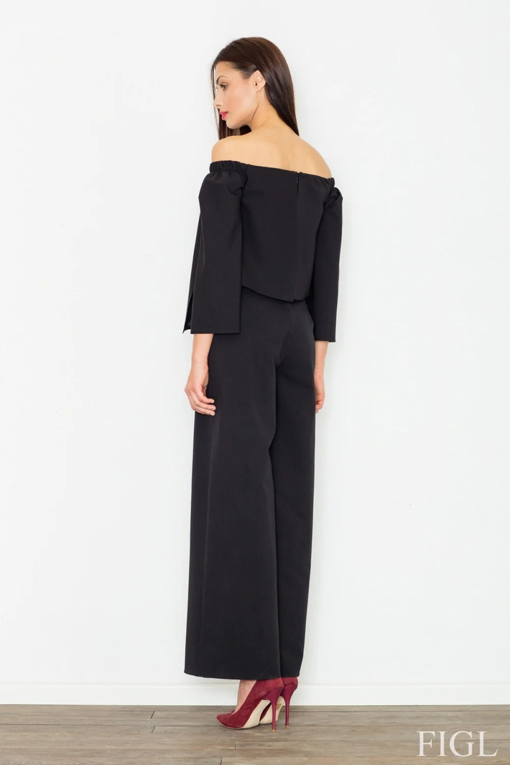 Trendový, elegantní a zároveň pohodlný overal M538 FIGL - prodlužte si nohy širším střihem kalhot v kombinaci s lodičkami - tříčtvrteční rukávMateriálové složení: 65% viskóza + 35% polyester