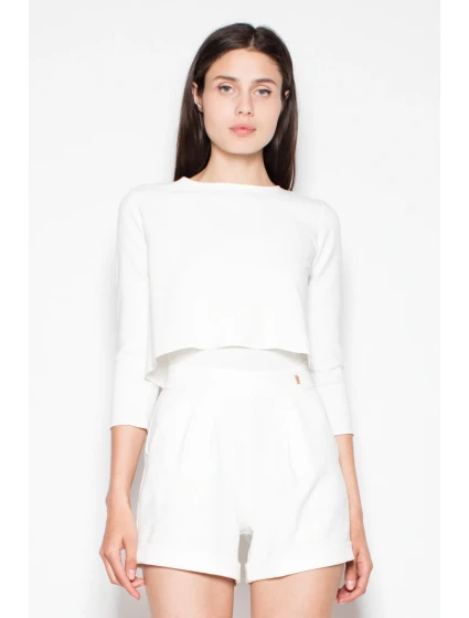 Elegantní dvouvrstvý overal s krátkými šortkami bez ramínek. Top má dlouhé rukávy, obléká se zepředu a vzadu se zapíná na háček. Model s originálním střihem.