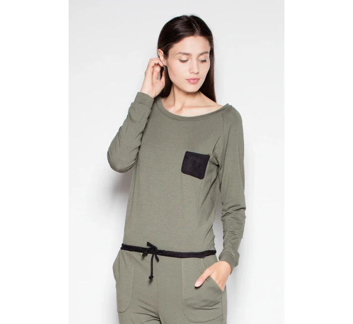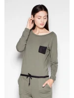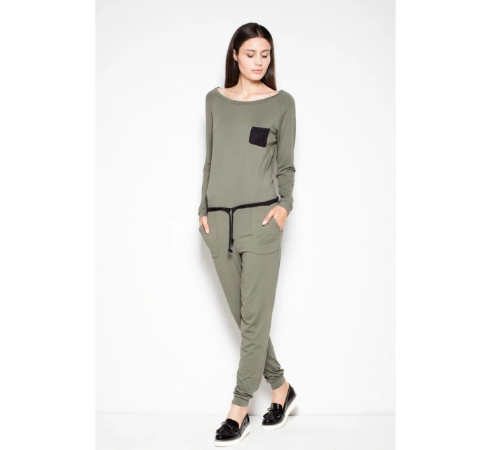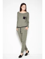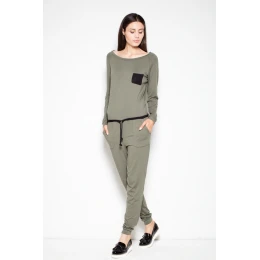 Elegantní kombinéza s dlouhými rukávy a dlouhými nohavicemi. Má kapsu a pásek v kontrastní barvě. Velmi pohodlné a zároveň velmi elegantní.