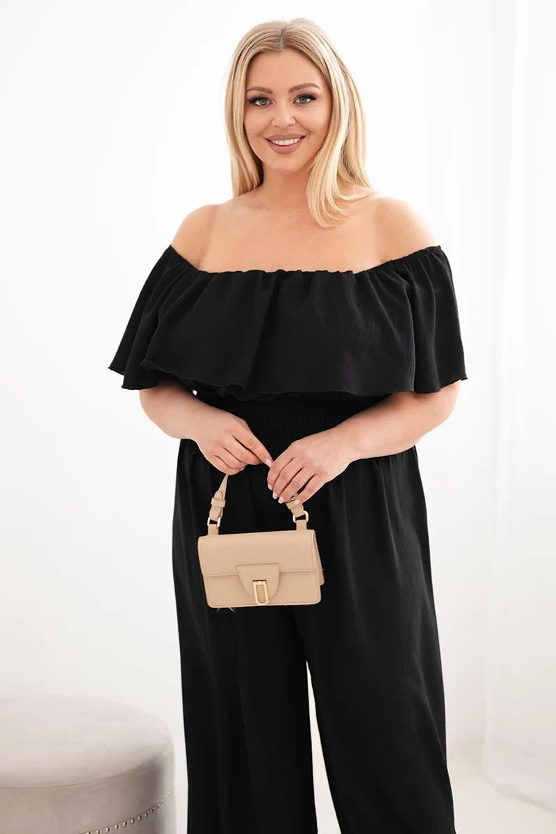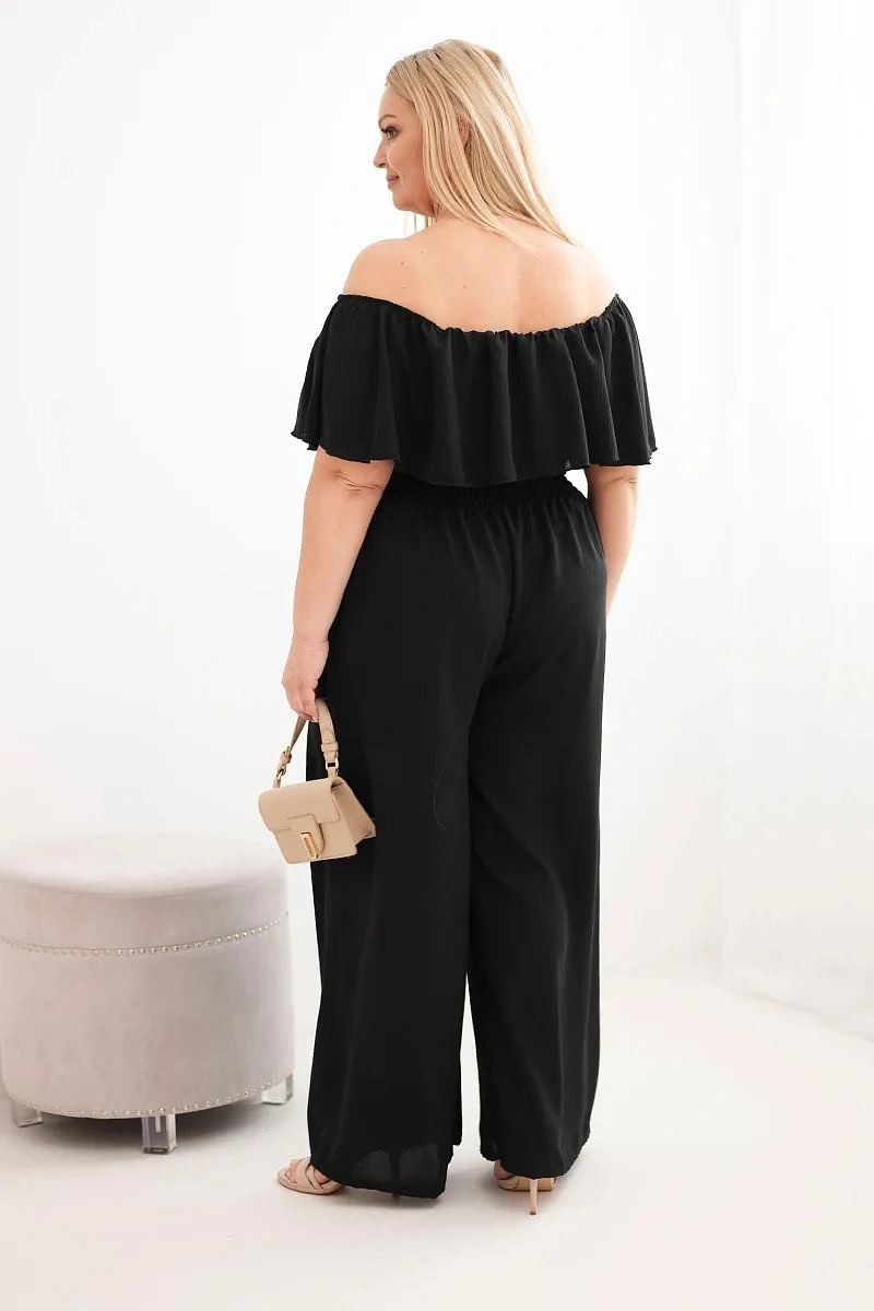 Dámský overal Plus Size s odhalenými model 22092390 volánem a širokými nohavicemi černý - K-Fashion
