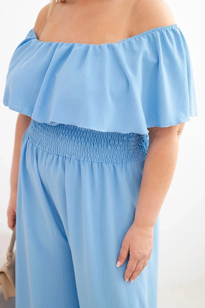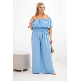 Dámský overal Plus Size s odhalenými model 22092406 s volánem a širokými nohavicemi modrý - K-Fashion