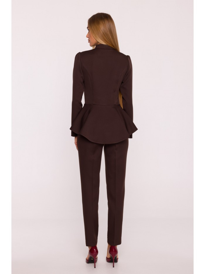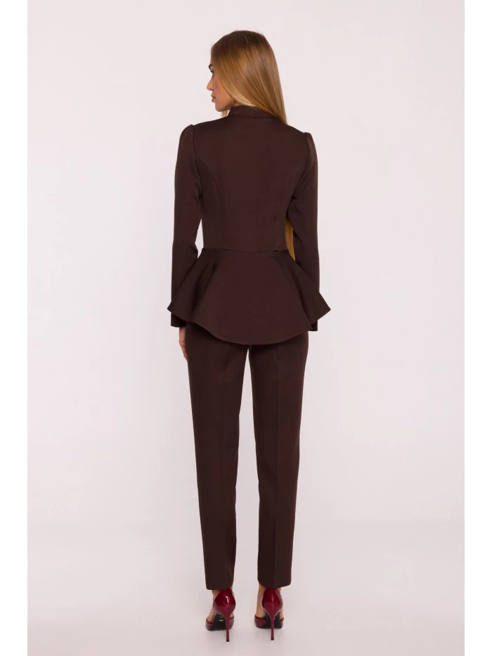 Tkanina: hladká tkanina s matným povrchem PODROBNOSTI O PRODUKTU Výstřih: výstřih do V s nastavitelnou hloubkou Rukávy: dlouhé Zapínání: vpředu na skrytý zip, vzadu na skrytý zip Pas: vypasovaný, zvýrazněný stylovým peplumem Nohy: zúžené směrem k lemu, délka ke kotníkům Kapsy: žádné Podšívka: žádná Model: M878 Navrženo a vyrobeno v Polsku Modelka na fotografii je vysoká 171 cm a má na sobě velikost S STYL A STŘIH Styl: jednodílný overal, vypasovaný v horní části těla, s peplumem zakrývajícím boky, část hýždí a oblast břicha Tvar: zvýrazňující postavu, s peplumem v pase a zúženými nohavicemi