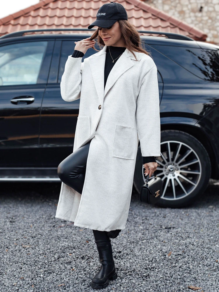 Dámský oversize dlouhý kabát ve tvaru rybí kosti AVELINNI