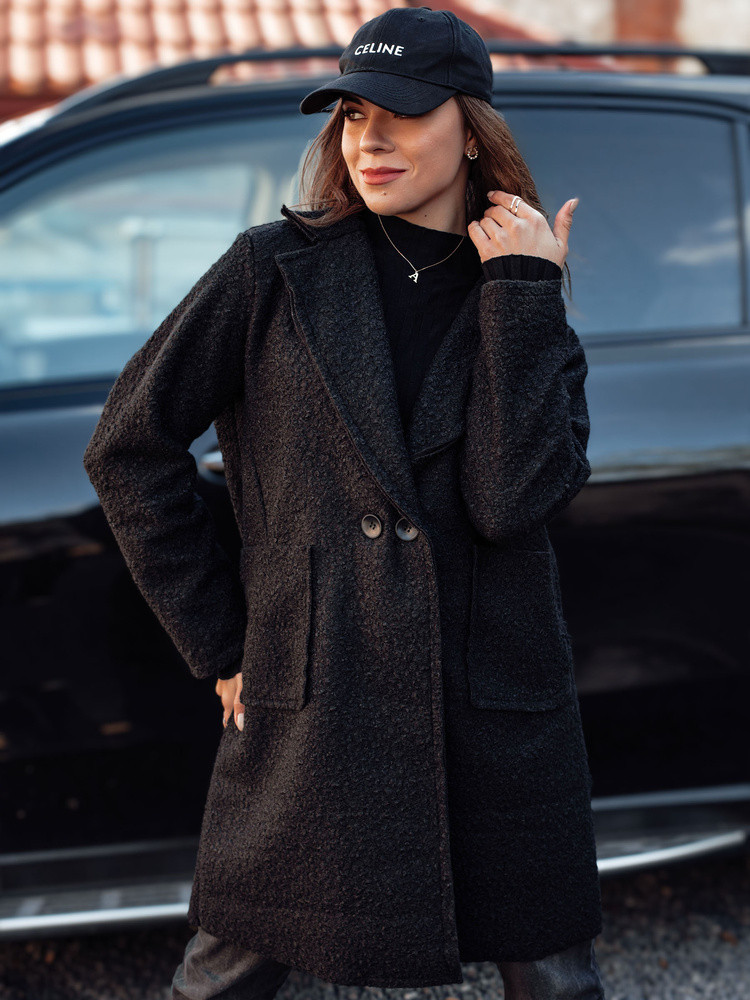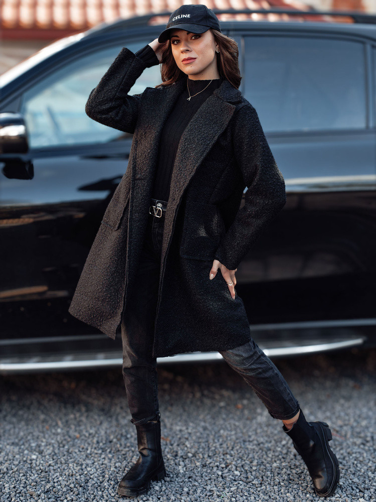 Dámský oversize dlouhý kabát BARALITE z jehněčí kůže černý FashionStreet NY0709