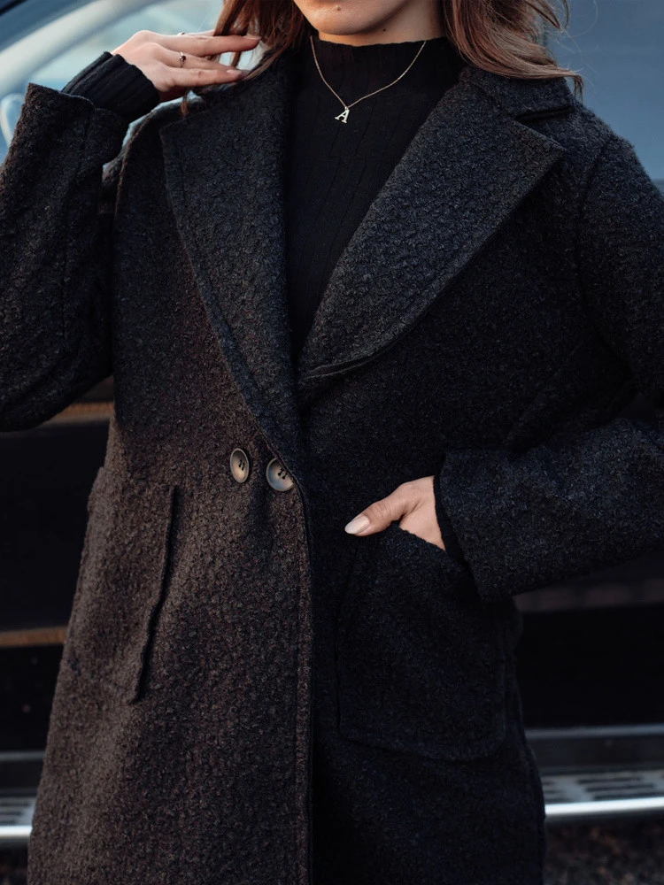 Dámský oversize dlouhý kabát a'la ovčí kůže BARALITE