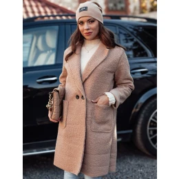 Dámský oversize dlouhý kabát z kůže béžový Dstreet model 21981938 - FashionStreet