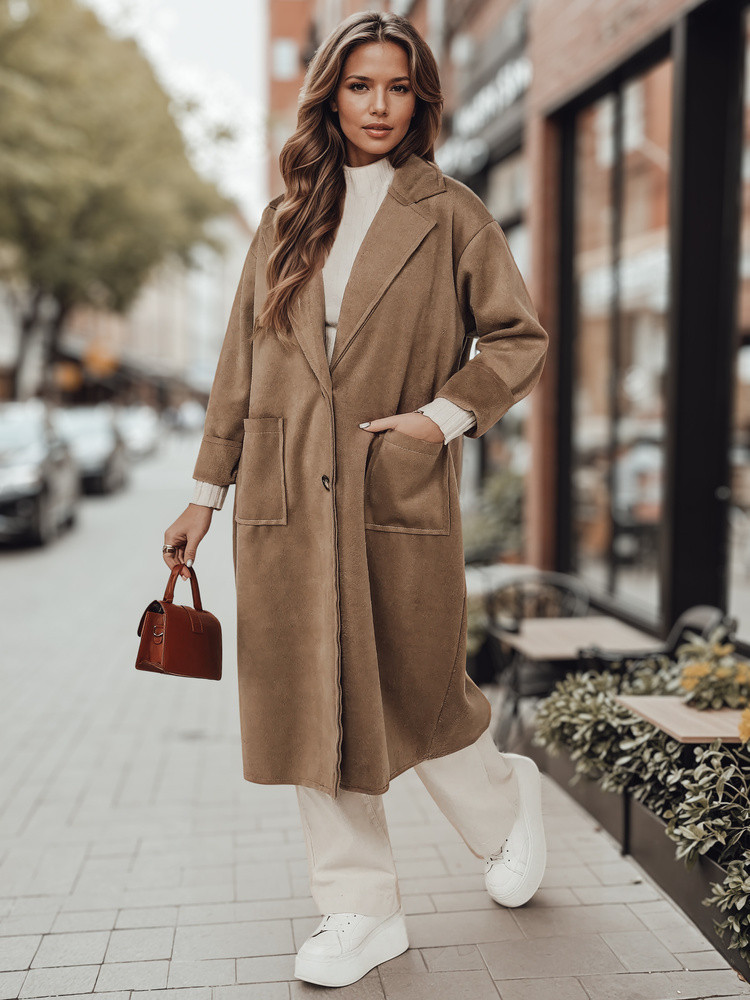 Elegantní dámský kabát pro milovnice klasického stylingu s nádechem moderny. Jeho minimalistický střih zvýrazňuje siluetu, zatímco kvalitní tkanina zajišťuje pohodlí při nošení po celý den. Je ideální pro chladnější dny a skvěle doplní každodenní i formálnější stylizace. Díky univerzálnímu střihu se kabát hodí jak ke klasické obuvi, tak k moderním doplňkům. Je to nadčasový kousek, který stojí za to mít ve svém šatníku.