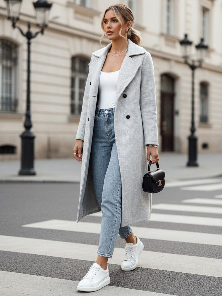 Kabát je vhodný pro městský, kancelářský i poloformální styling, dobře se kombinuje s džínami, látkovými kalhotami i šaty a lze jej nosit rozepnutý nebo přepásaný, podle toho, jaký efekt preferujete.