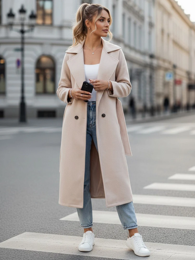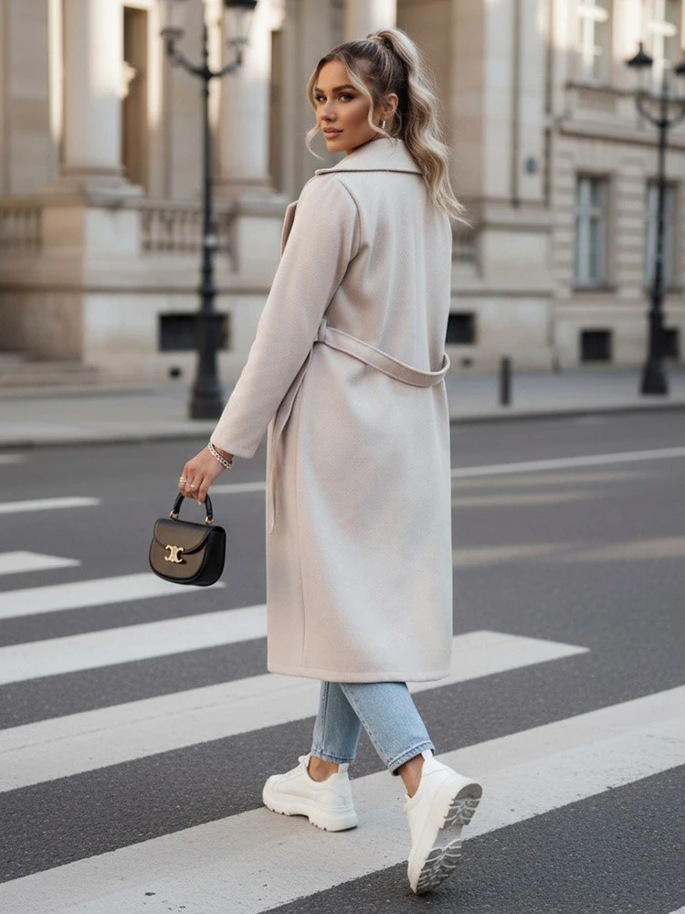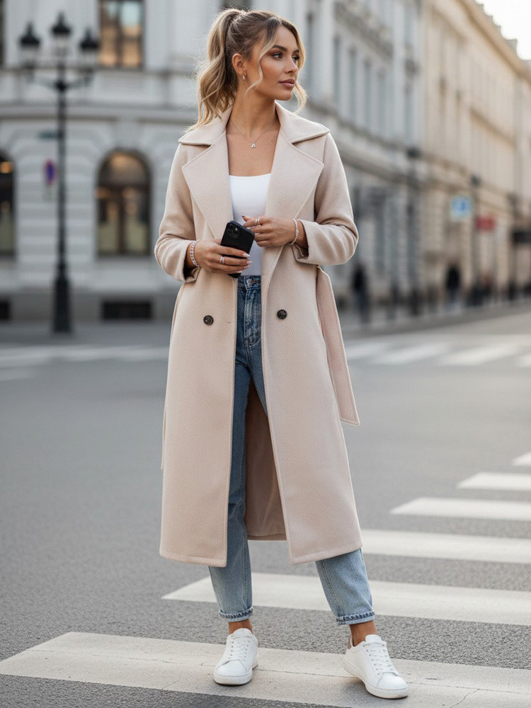 Dámský oversize kabát CASHMELY s dlouhým vázáním v béžové barvě FashionStreet NY0715
