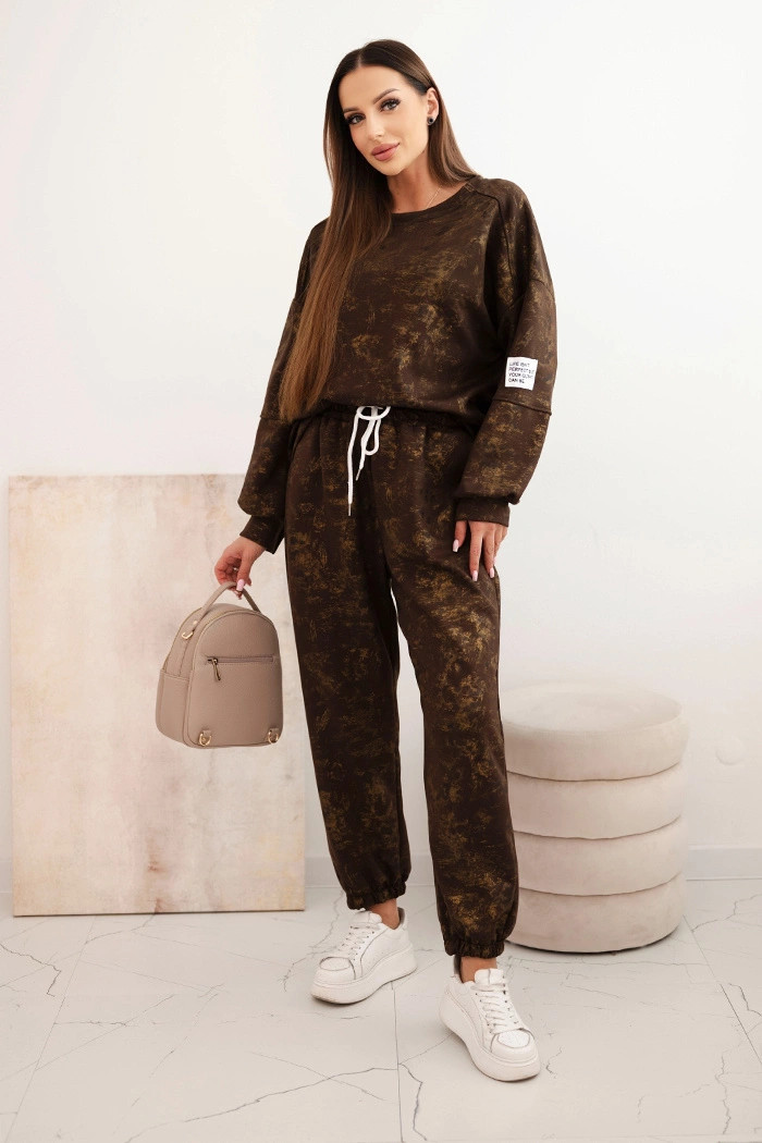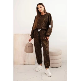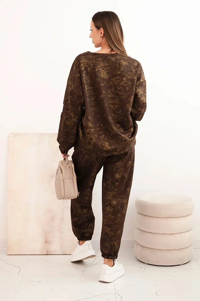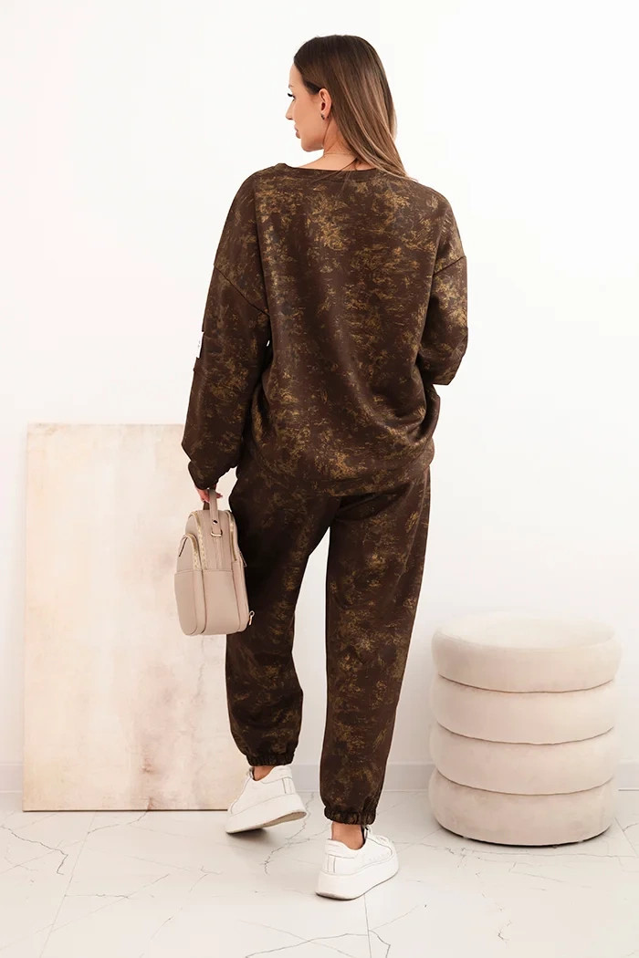 Dámský oversize komplet z viskózy s mikinou a efektem praní hnědý model 21421736 - K-Fashion