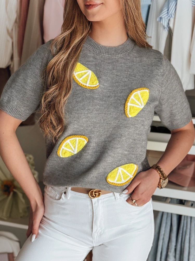 Dámský oversize svetr s citrony Lemon grey FashionStreet MY2478
